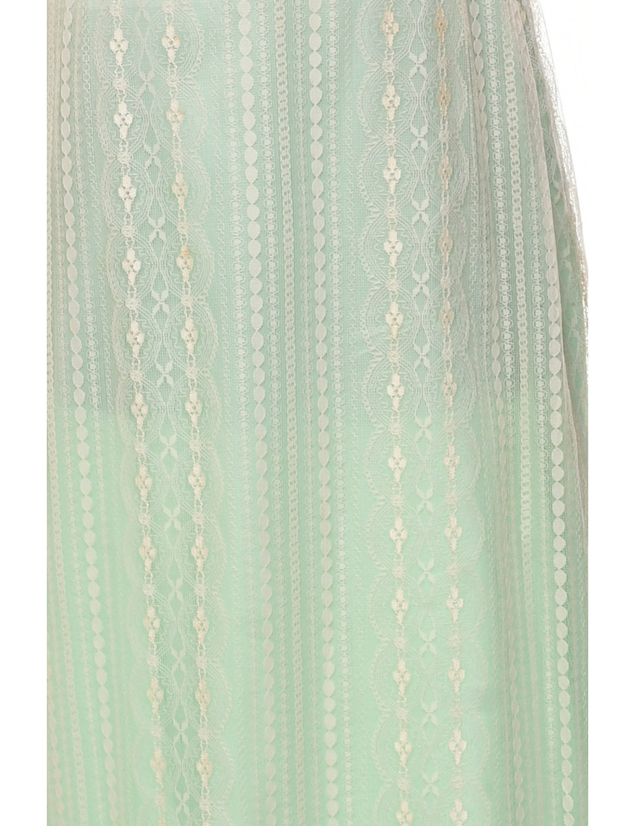 Lace off white & turquoise 1970s maxi dress with contrasting lining.