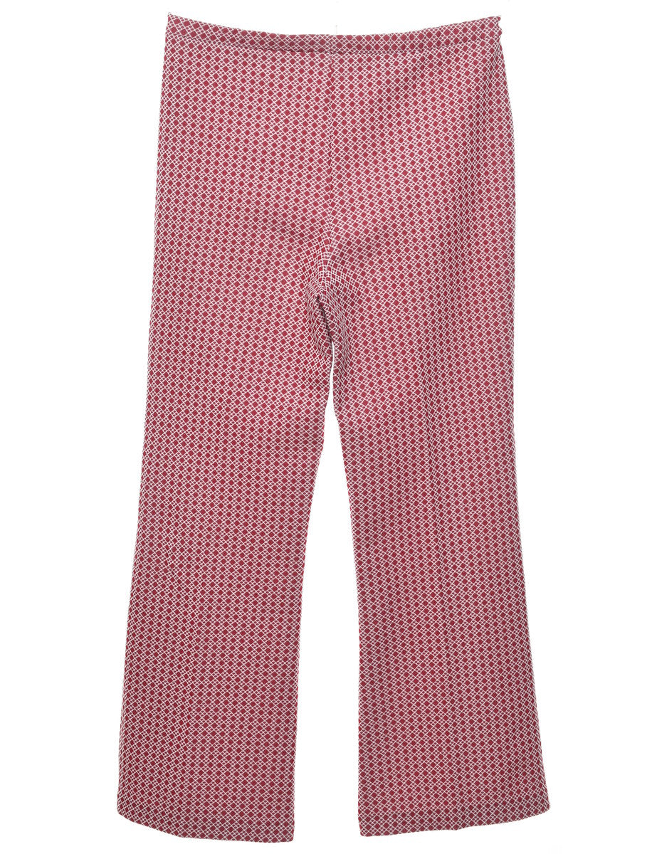 1970s patterned trousers. Comes in maroon with an elasticized waist.