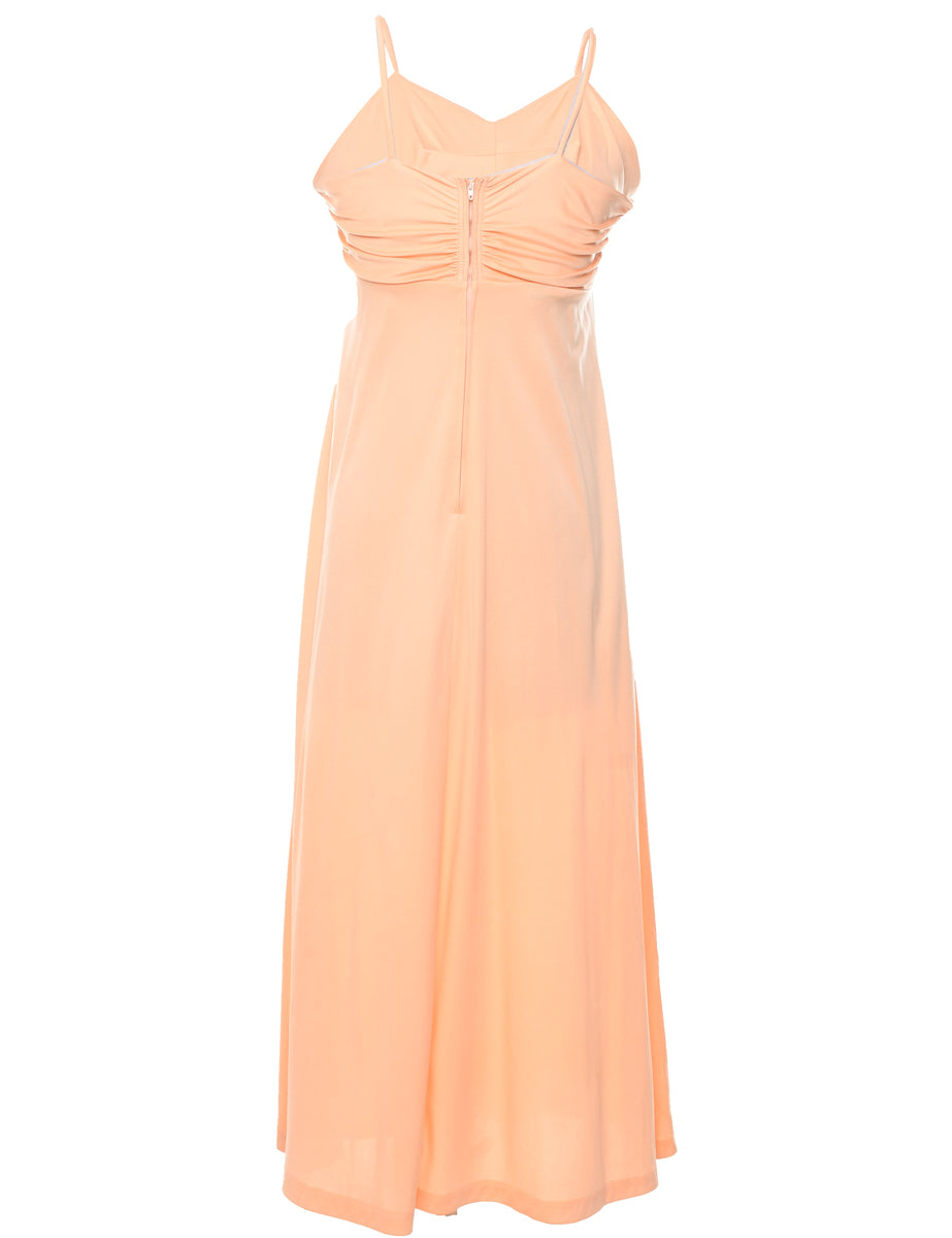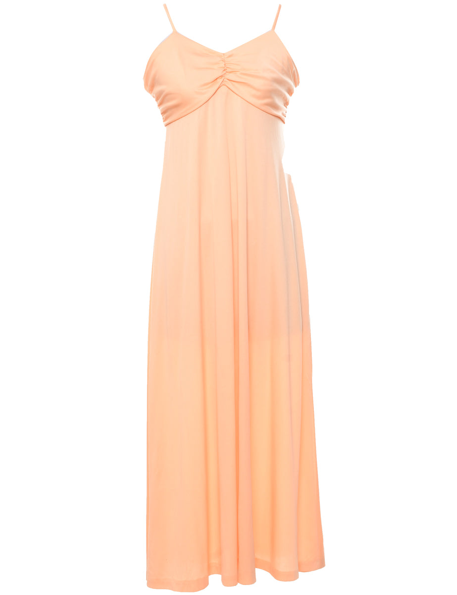 1970s strappy maxi dress. Comes in peach with ruched detailing.