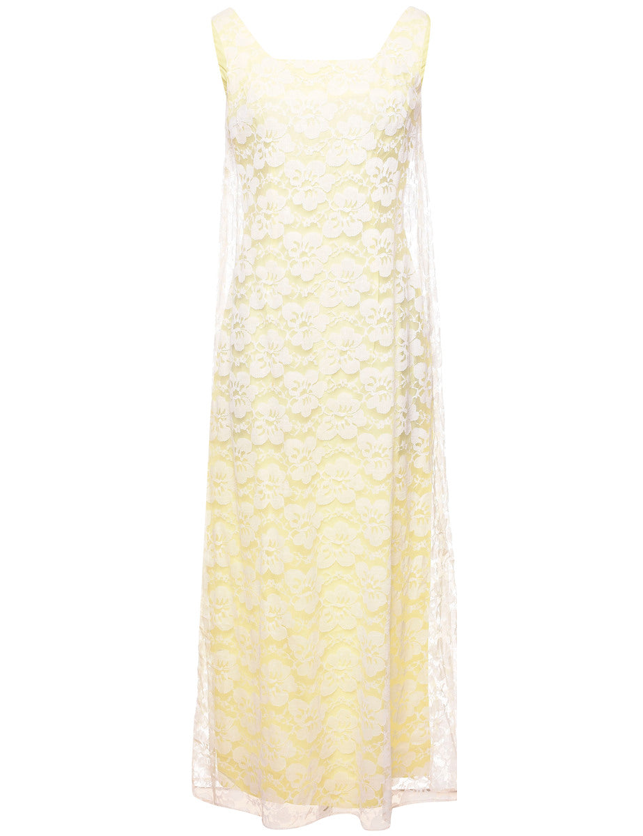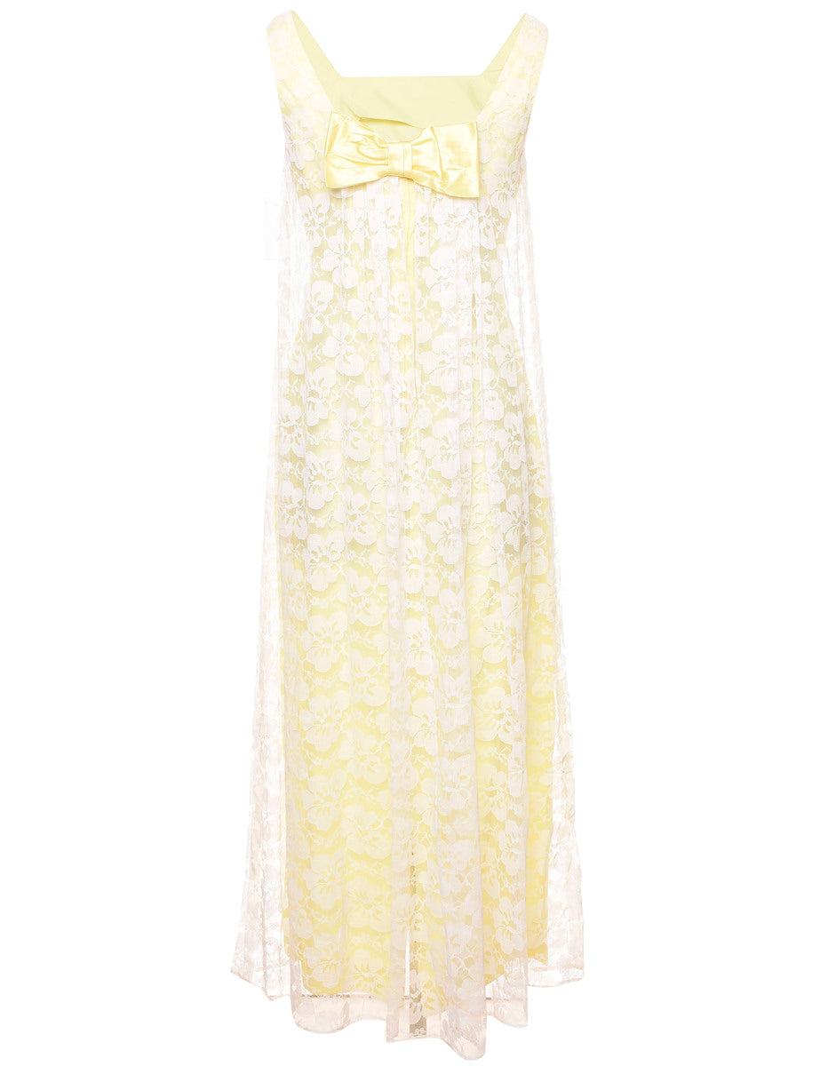 Pale Yellow & White Vintage Lace 1970s Maxi Dress - M