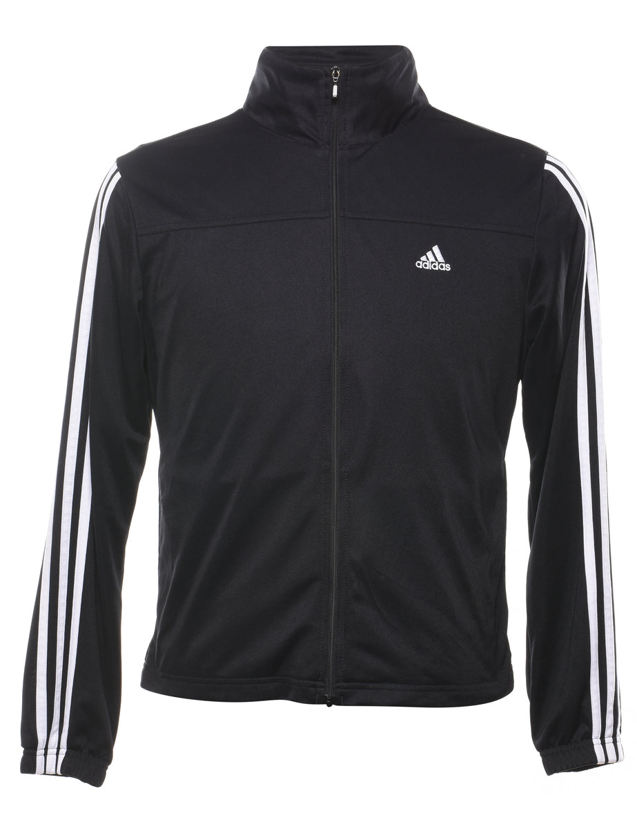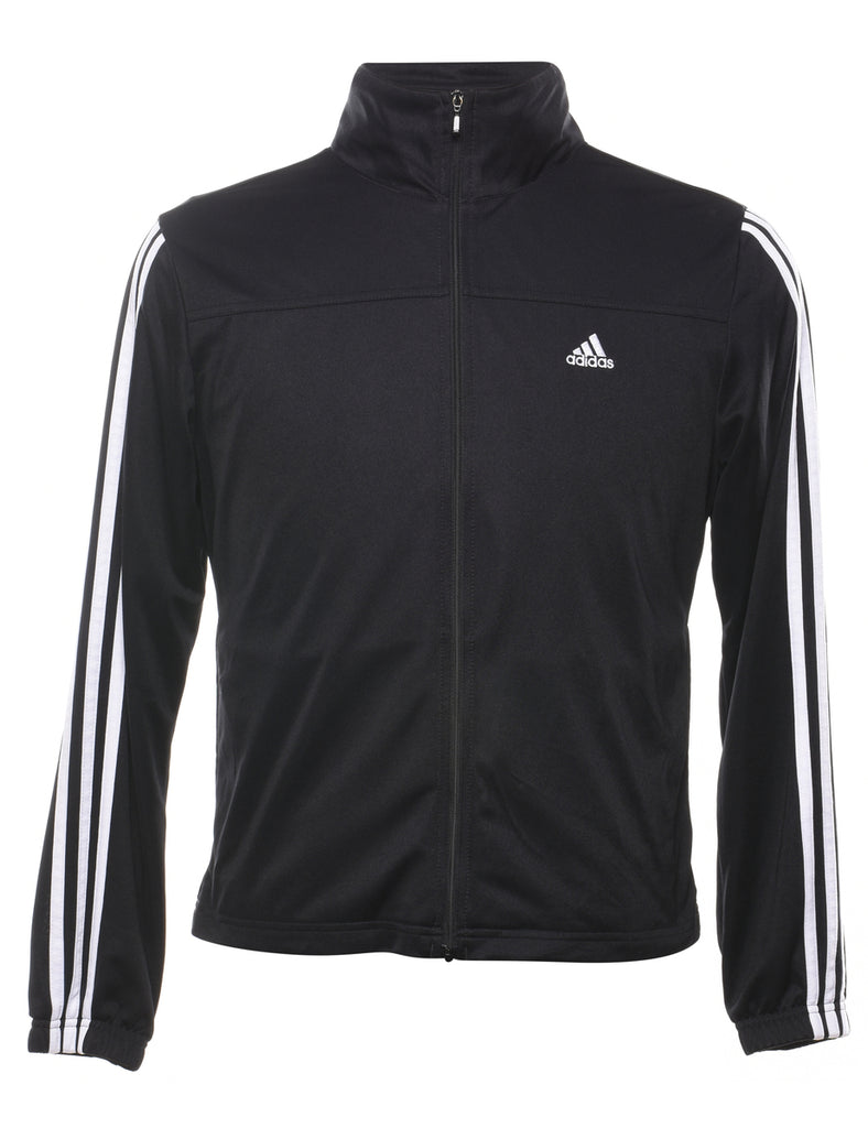 Vintage Adidas Black & White Three-Stripe Track Top - M