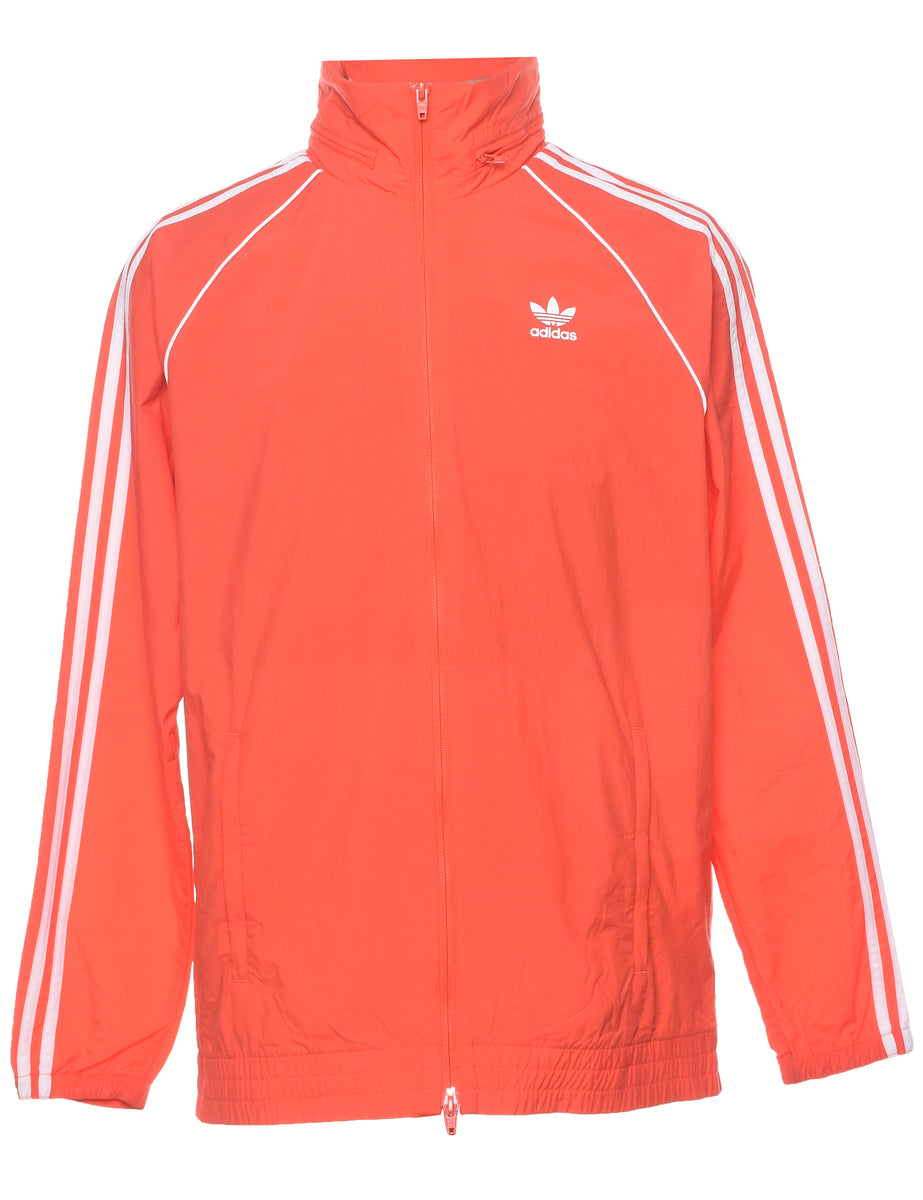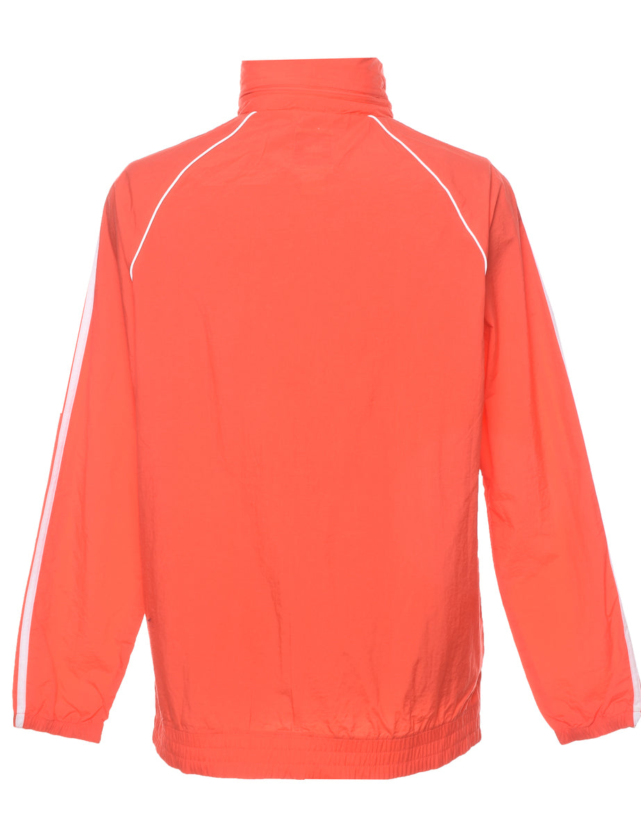 Zip front jacket. Comes in orange with multiple pockets and raglan sleeves.