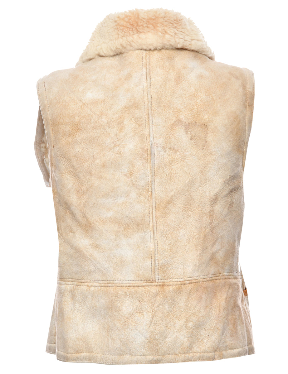 Vintage Beige Fur Trim Shearling-Lined Waistcoat - S