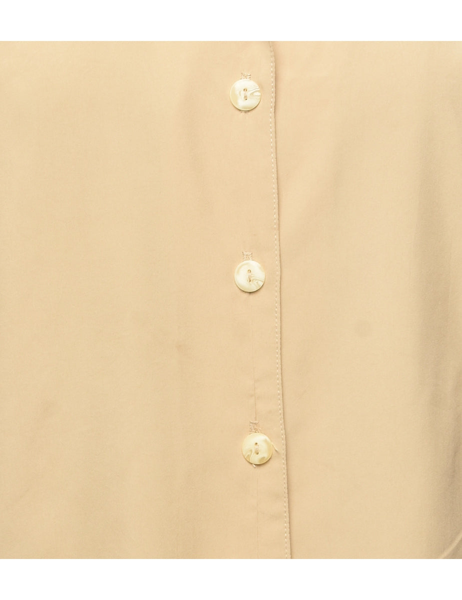 Blouse comes in brown with a revere front and removable shoulder pads.