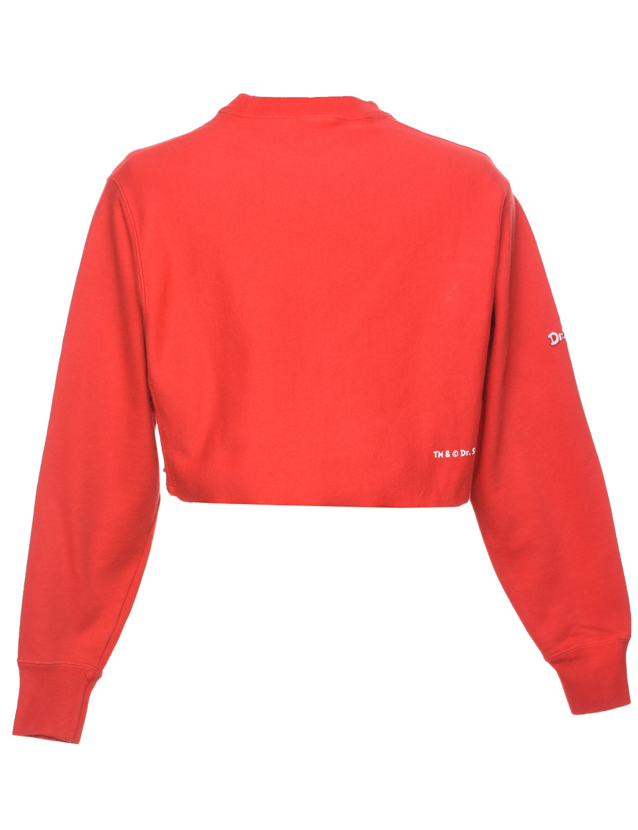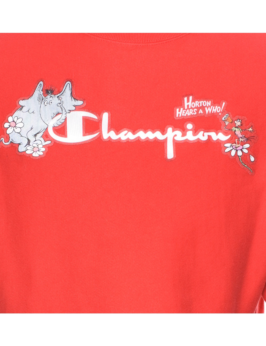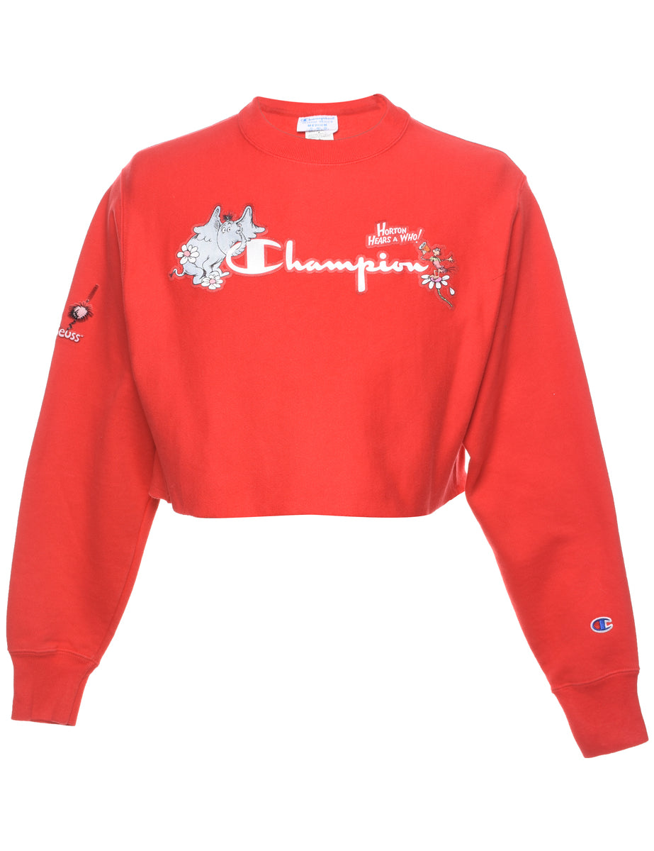 Champion reverse weave printed sweatshirt in red with a drop shoulder.