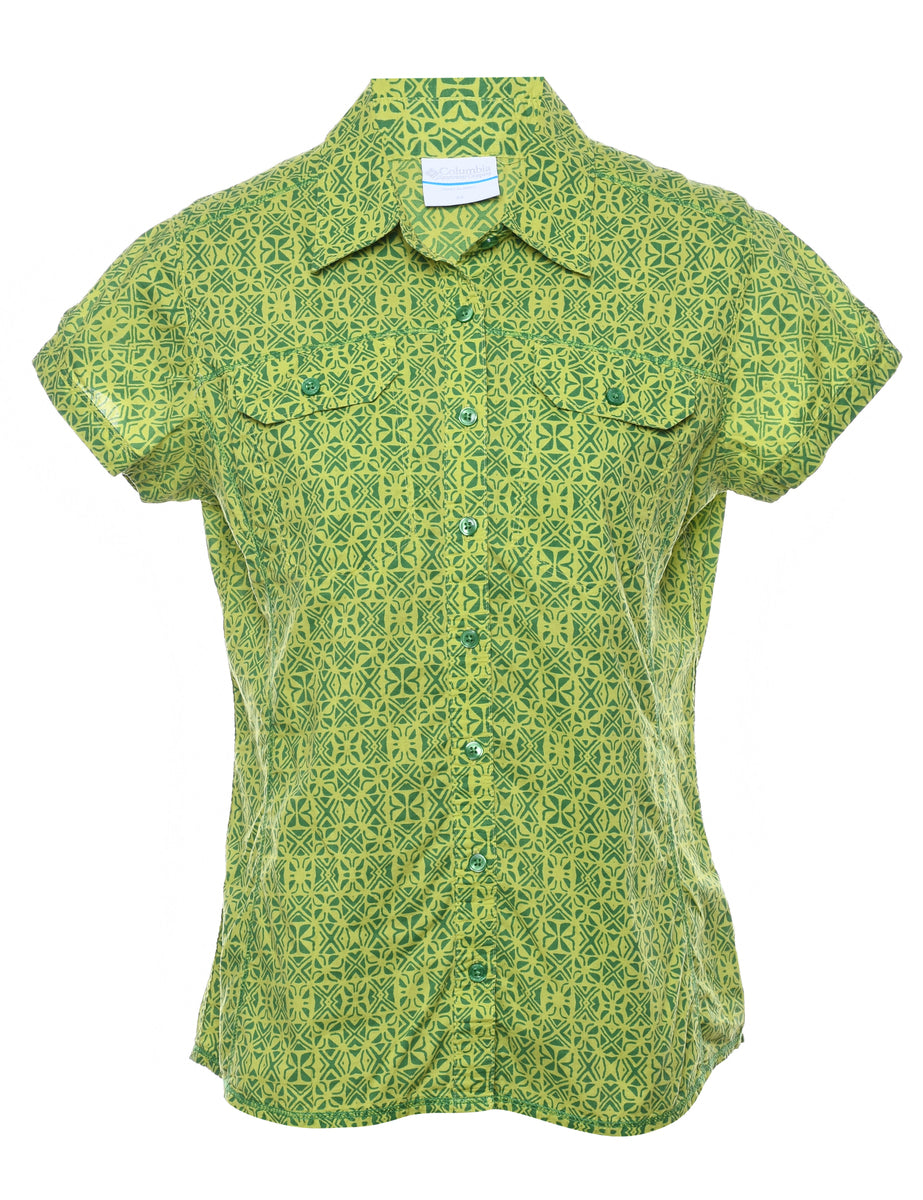 Columbia floral shirt. Comes in lime green with two pockets.