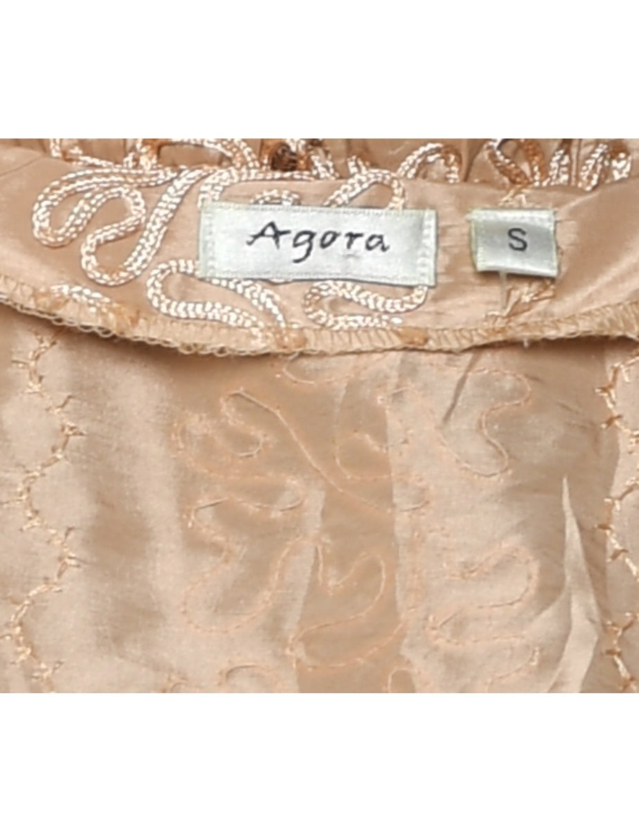 Embroidered beige metallic jacket complete with a shawl collar & embellishments.