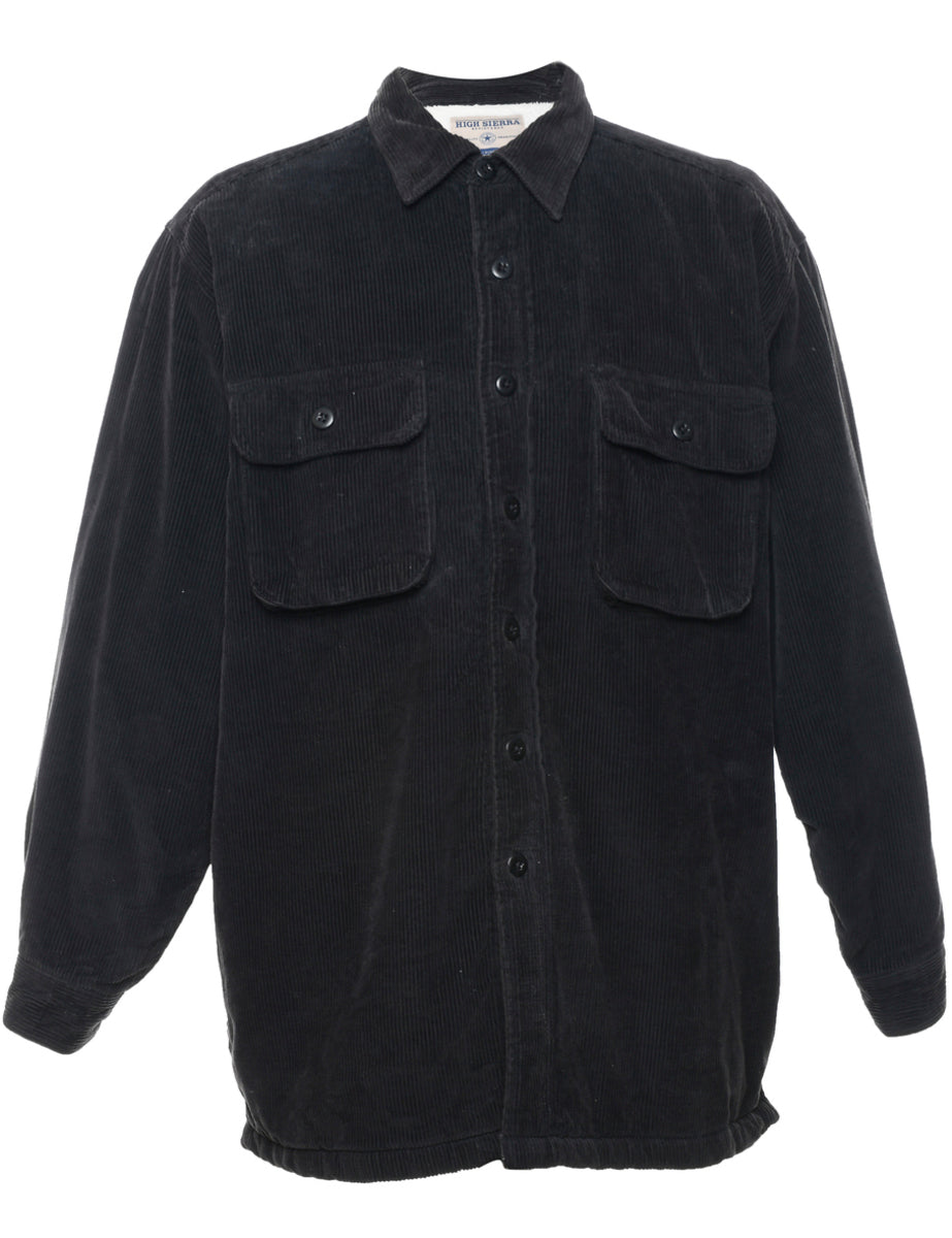 High Sierra corduroy shirt comes in black with faux shearling lining and pockets.