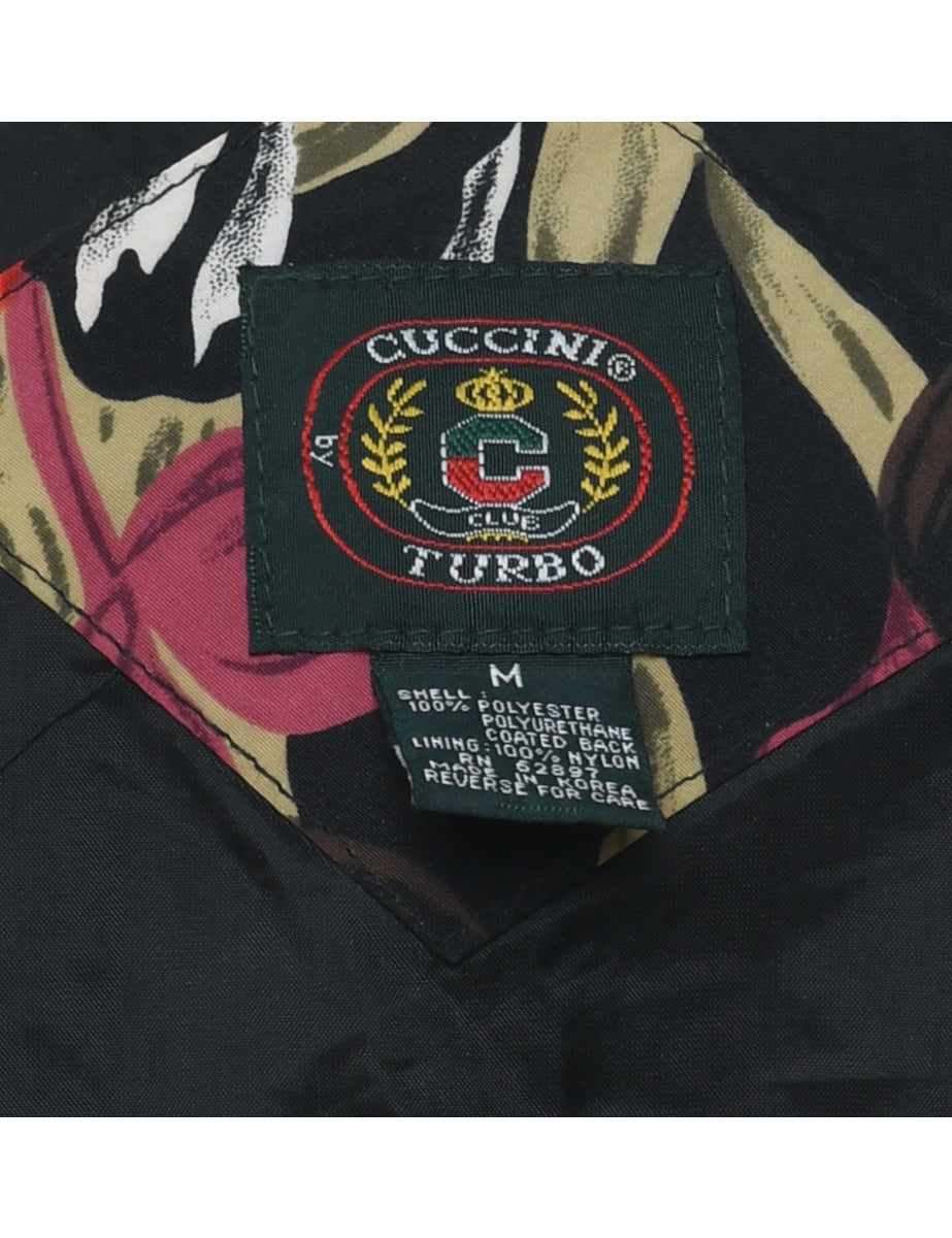 Floral pattern multi-colour nylon jacket with multiple pockets and raglan sleeves.