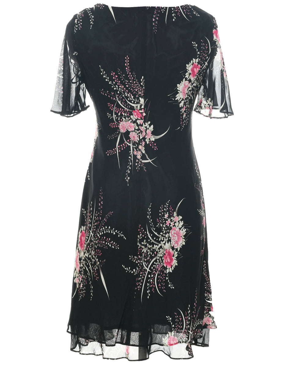 Floral print dress. Comes in black with a round neck.