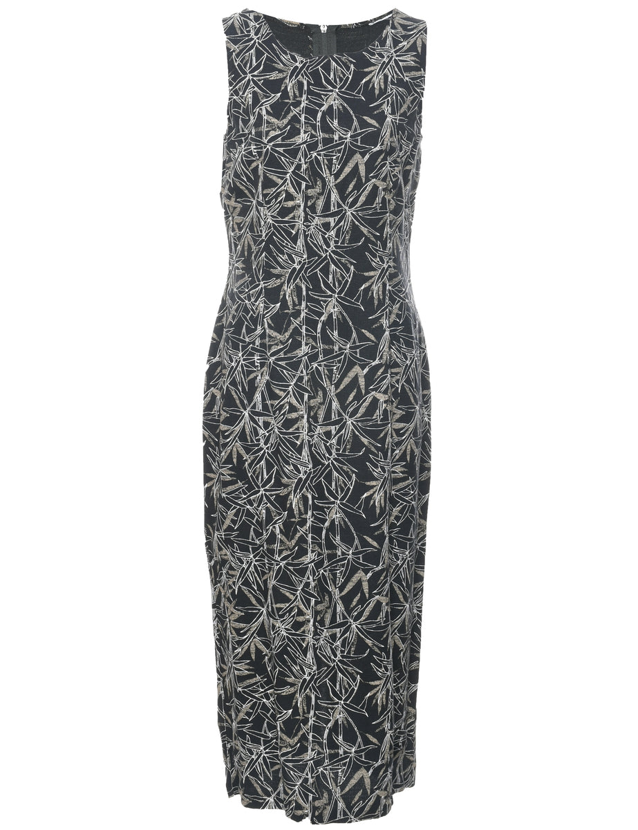Vintage Leafy Print Dress - M