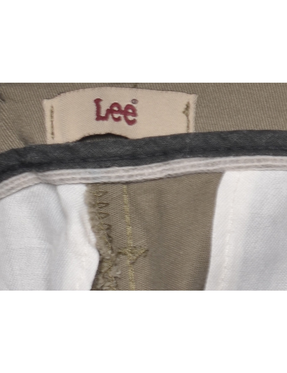 Lee trousers in olive green with belt loops and pockets.