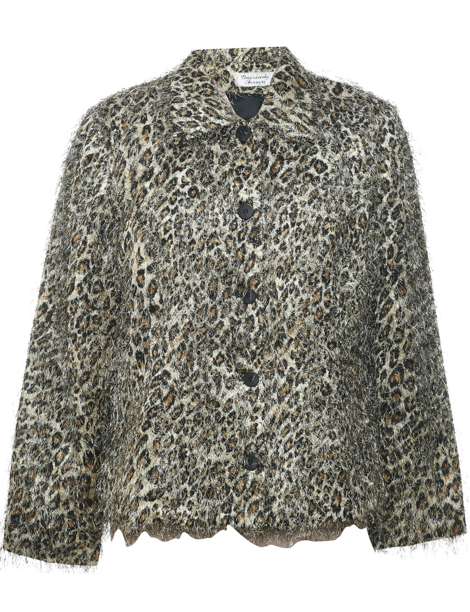Zip front jacket with leopard print. Comes in multi-colour with shoulder pads.
