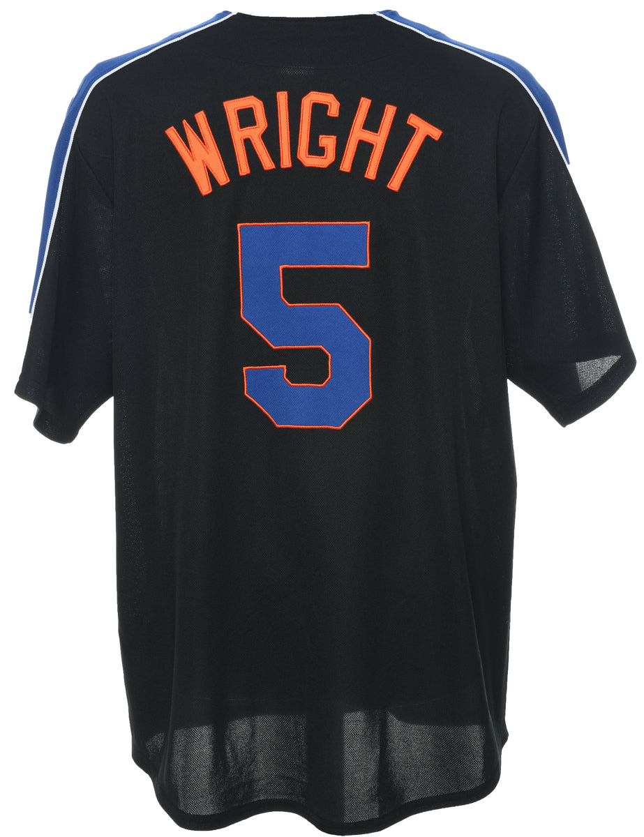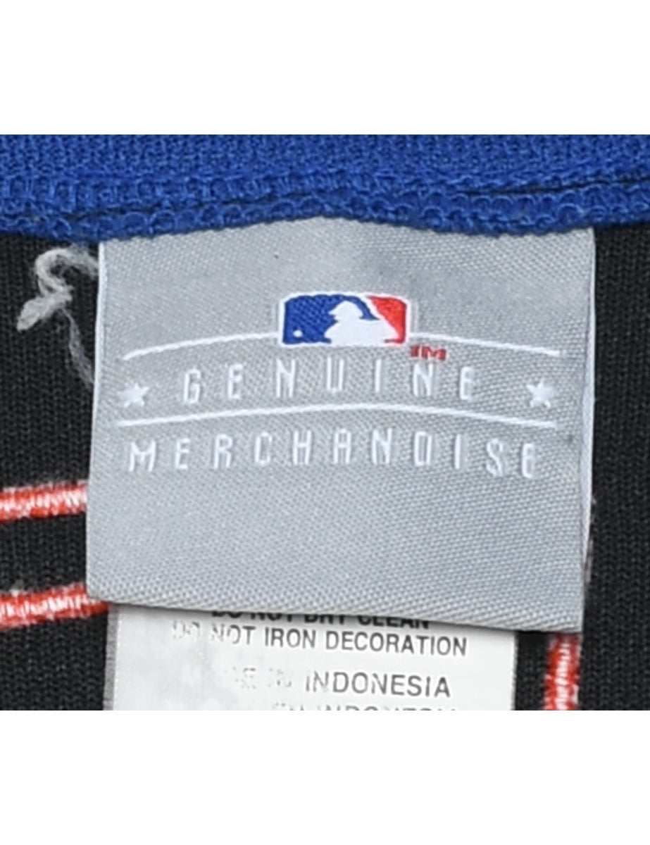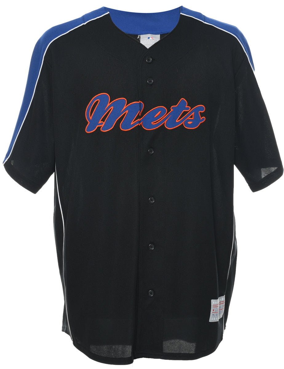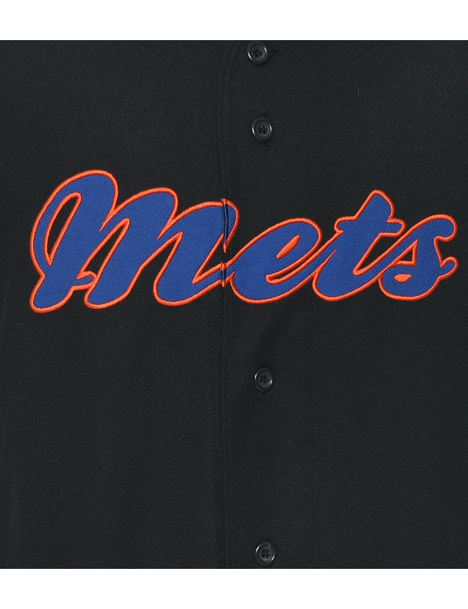 Mlb black mets sports t-shirt with a v-neck and embroidery.