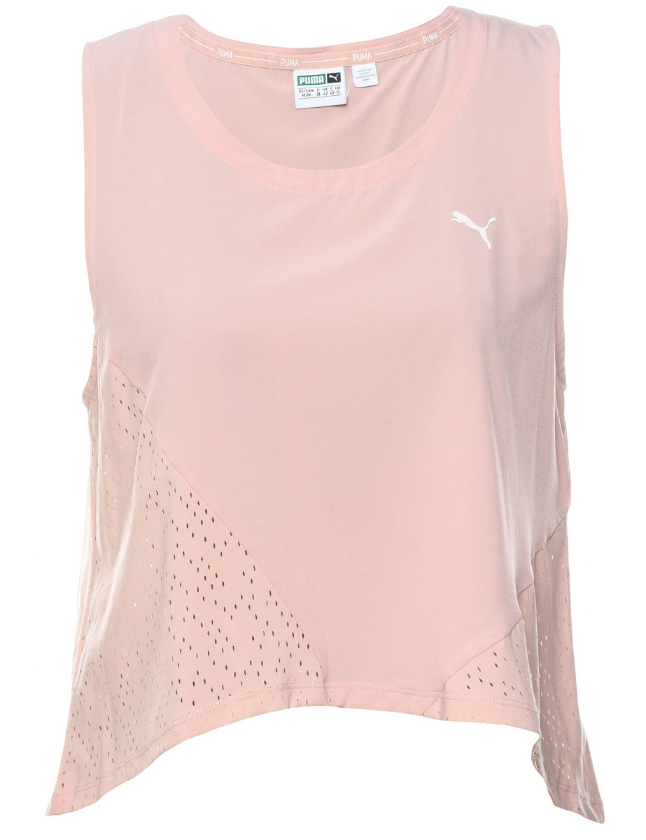 Puma sleeveless top in pale pink with a round neck and an asymmetric hem.