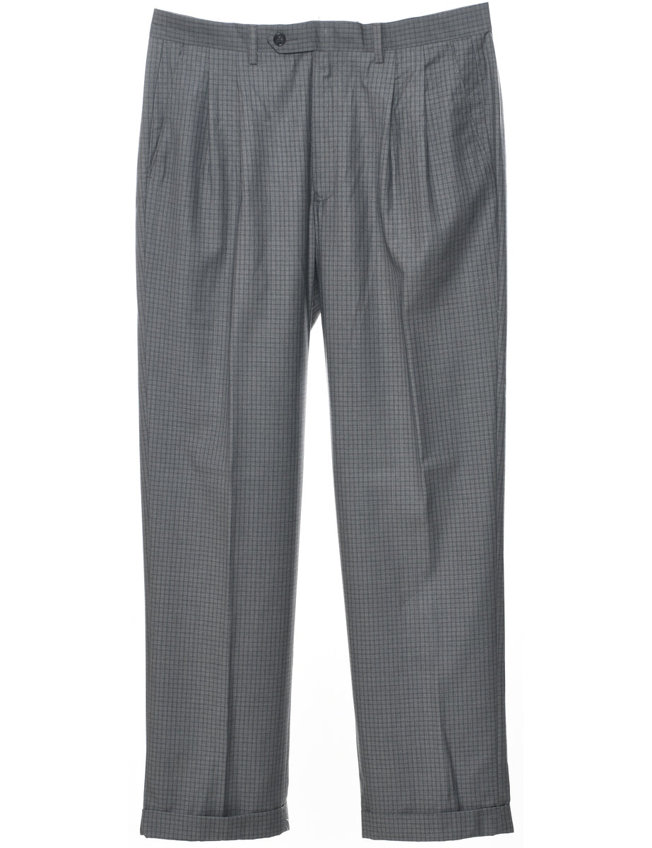 Ralph Lauren trousers comes in grey with checked pattern, pleating and multiple pockets.