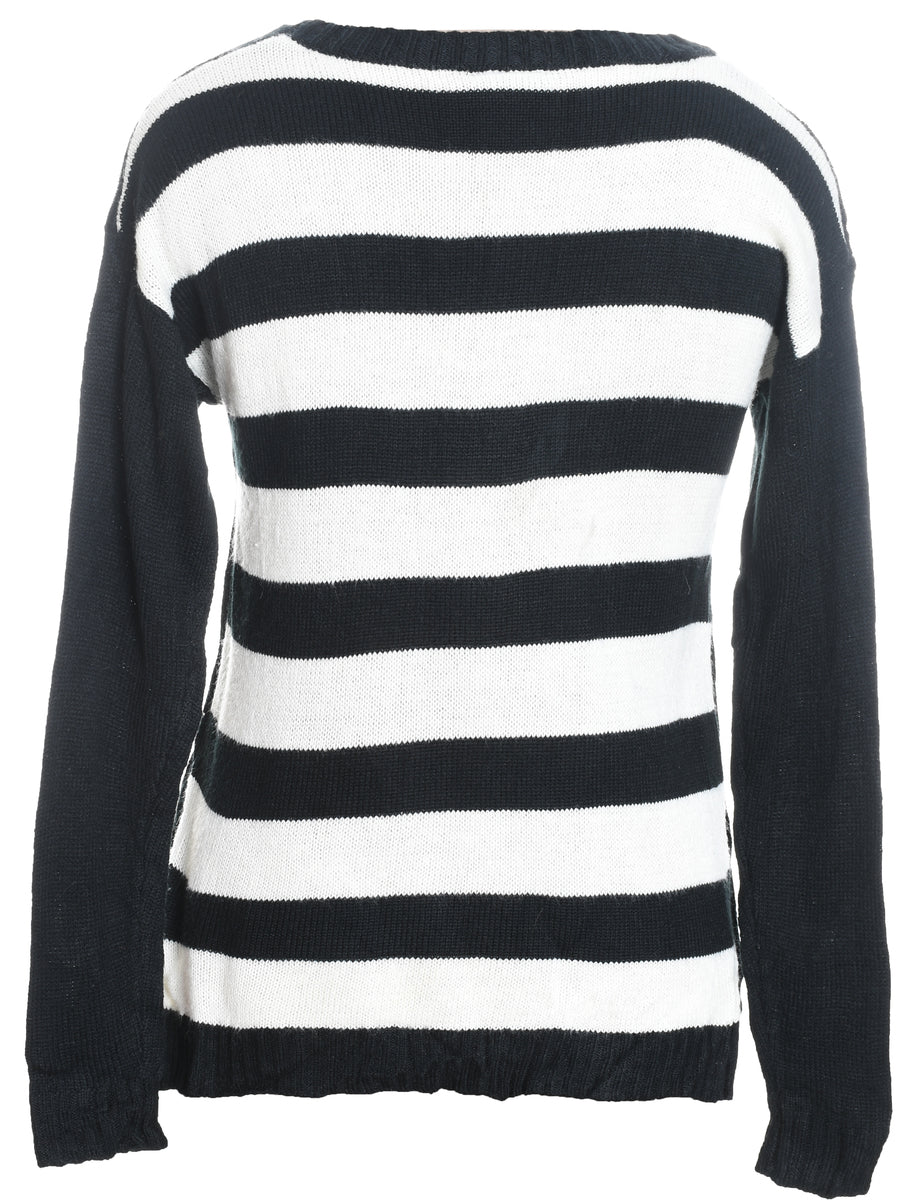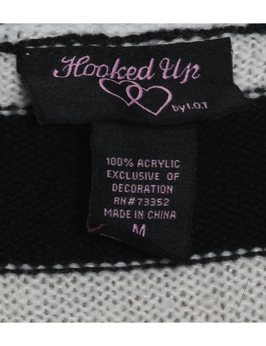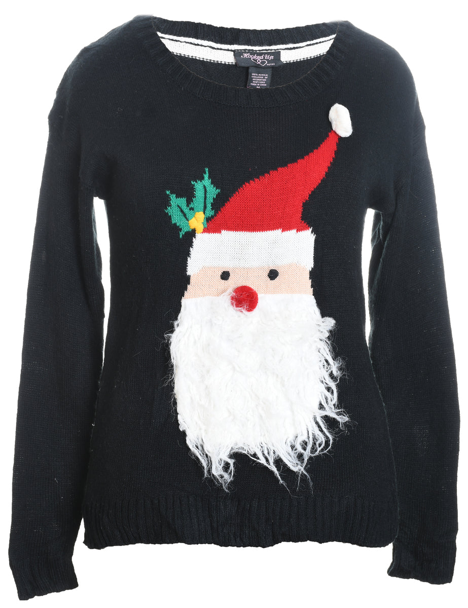 Santa claus christmas jumper in black with a round neck and a drop shoulder.