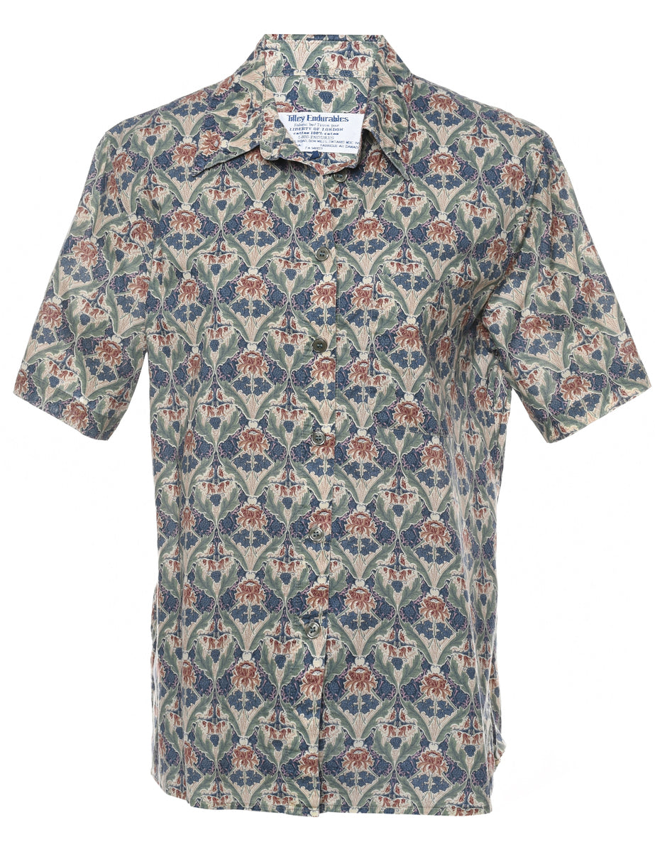 Short sleeve blouse comes in multi-colour with a classic collar and a button front.