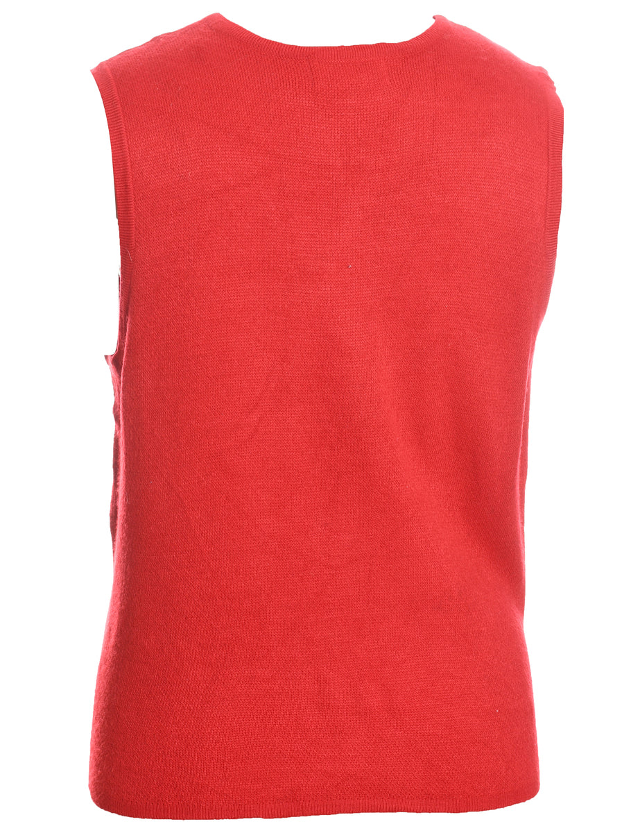 Vintage Snowman Design Red Knit Christmas Vest - M