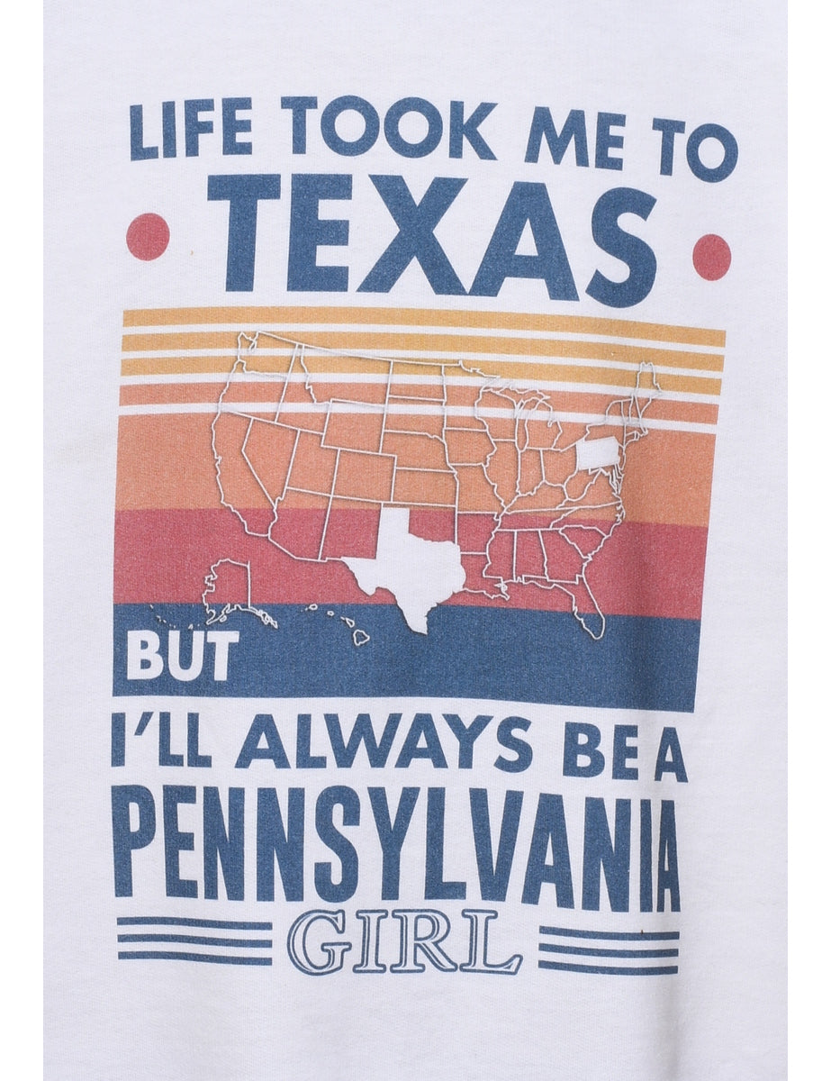 Texas printed sweatshirt. Comes in white.