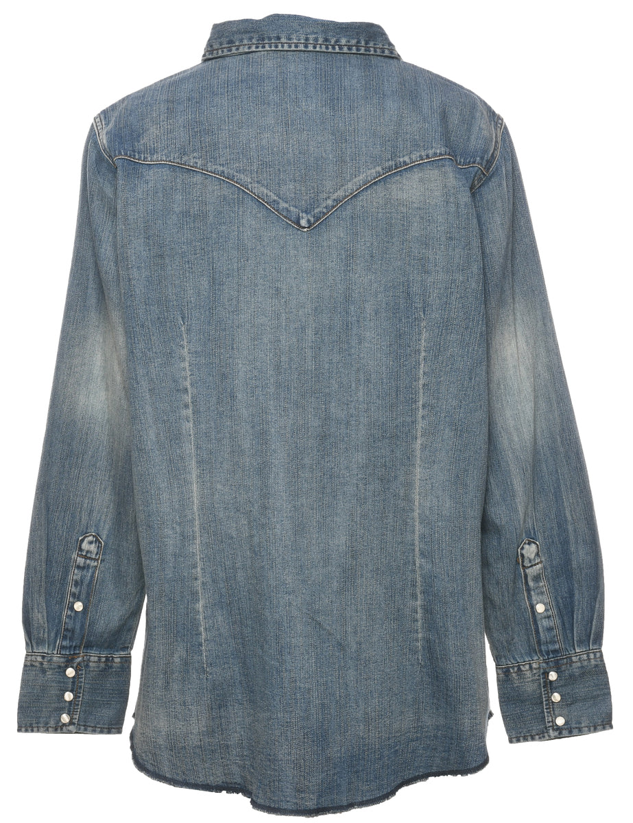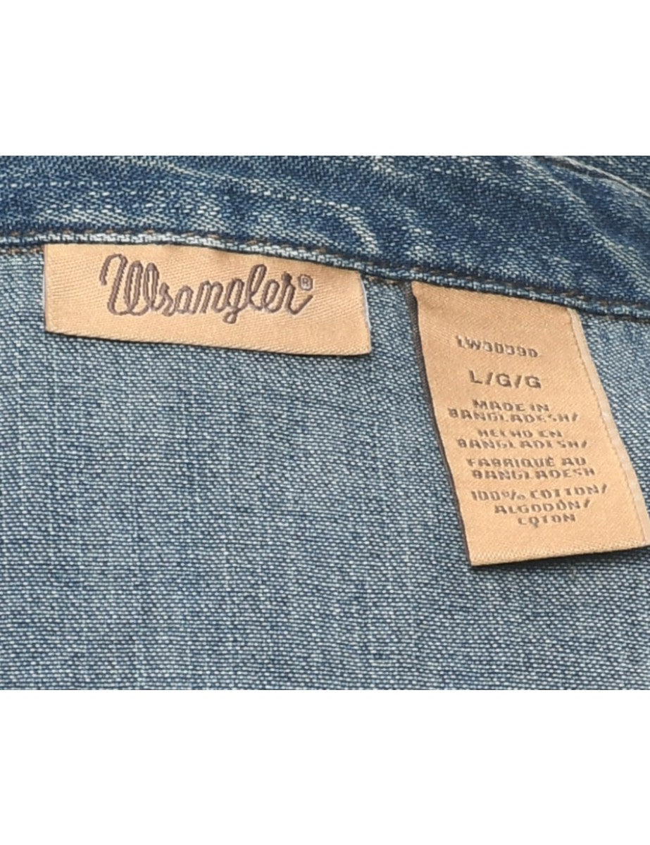 Wrangler long sleeved denim shirt in light wash with a classic collar and one pocket.