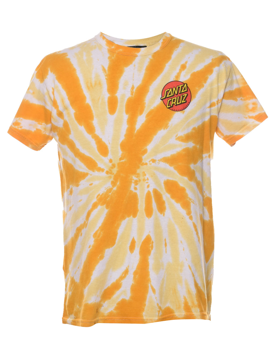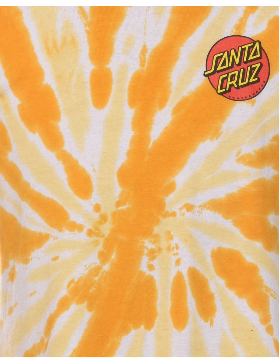Tie-dye Santa Cruz skateboarding t-shirt. Comes in yellow & orange.