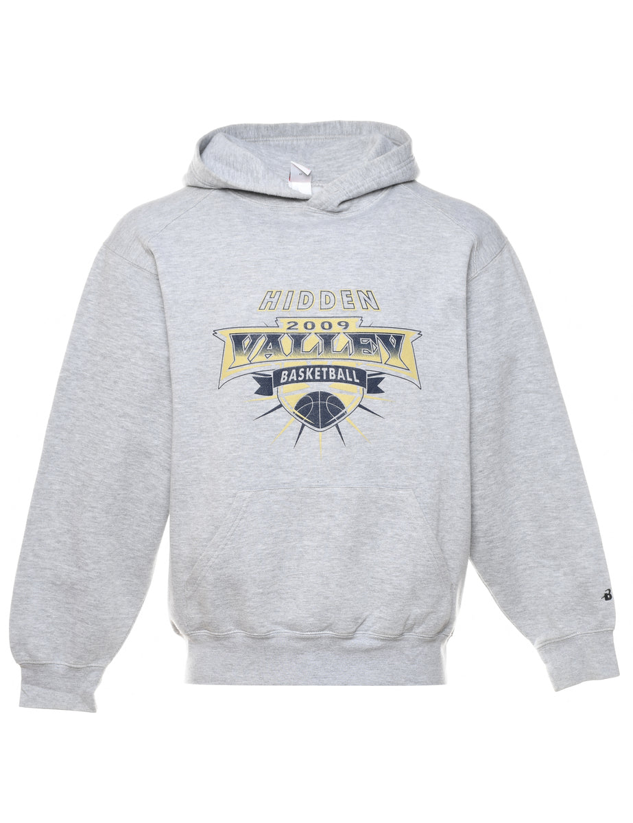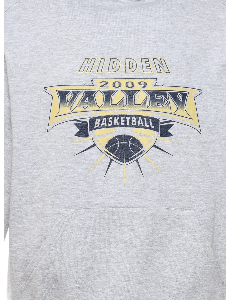 Vintage Grey Hidden 2009 Valley Basketball Printed Hoodie - M