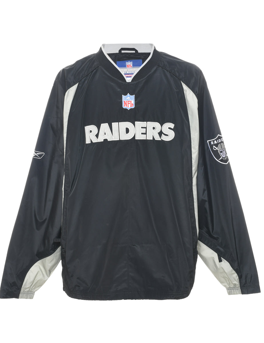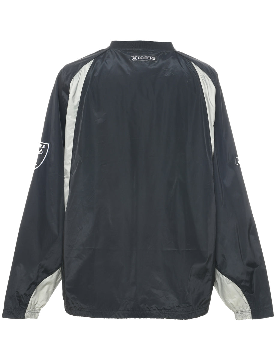 Reebok nfl nylon jersey in black with two pockets and raglan sleeves.