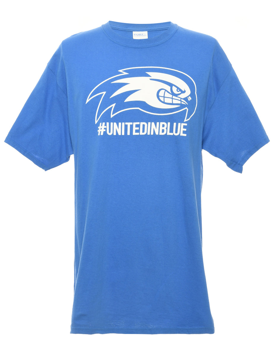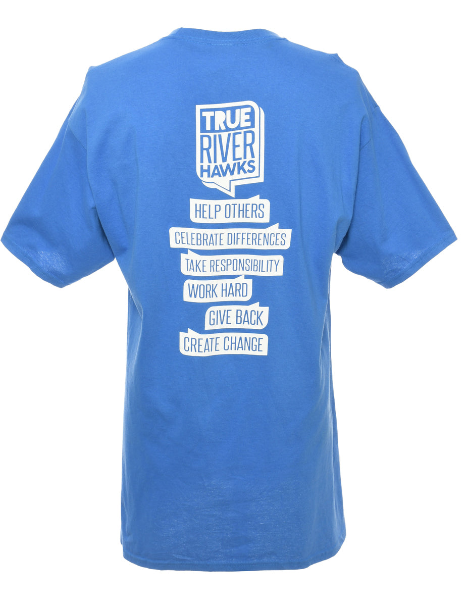 Vintage True River Hawks Blue Basketball Sports T-shirt - L