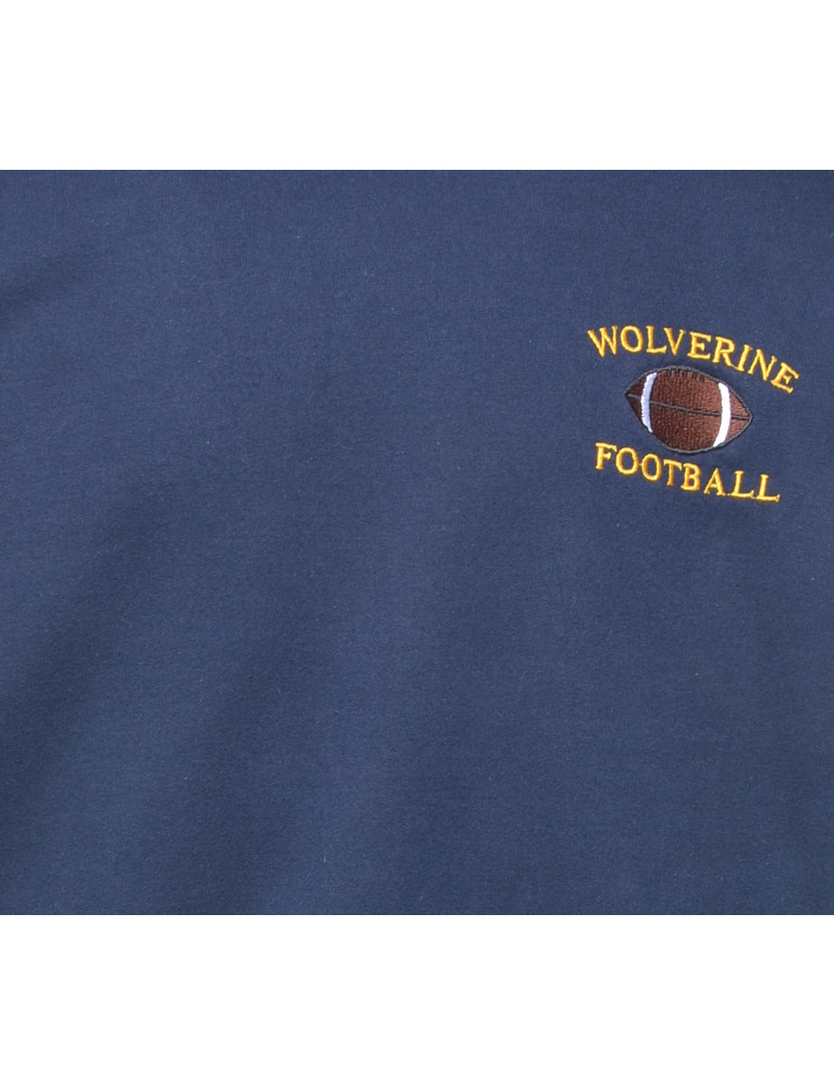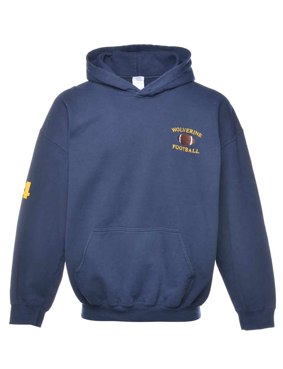 Wolverine Football printed hoodie. Comes in navy with one pocket.