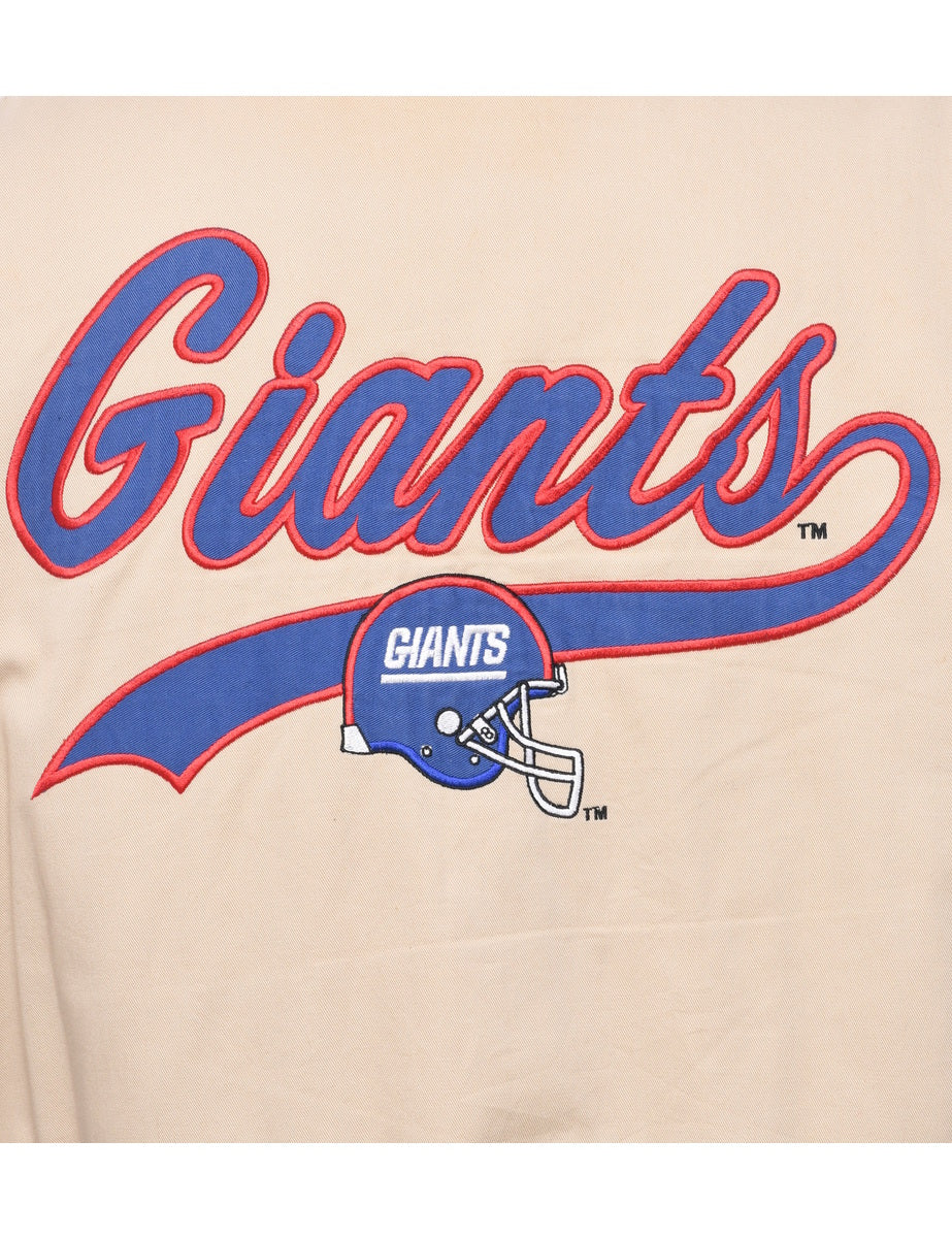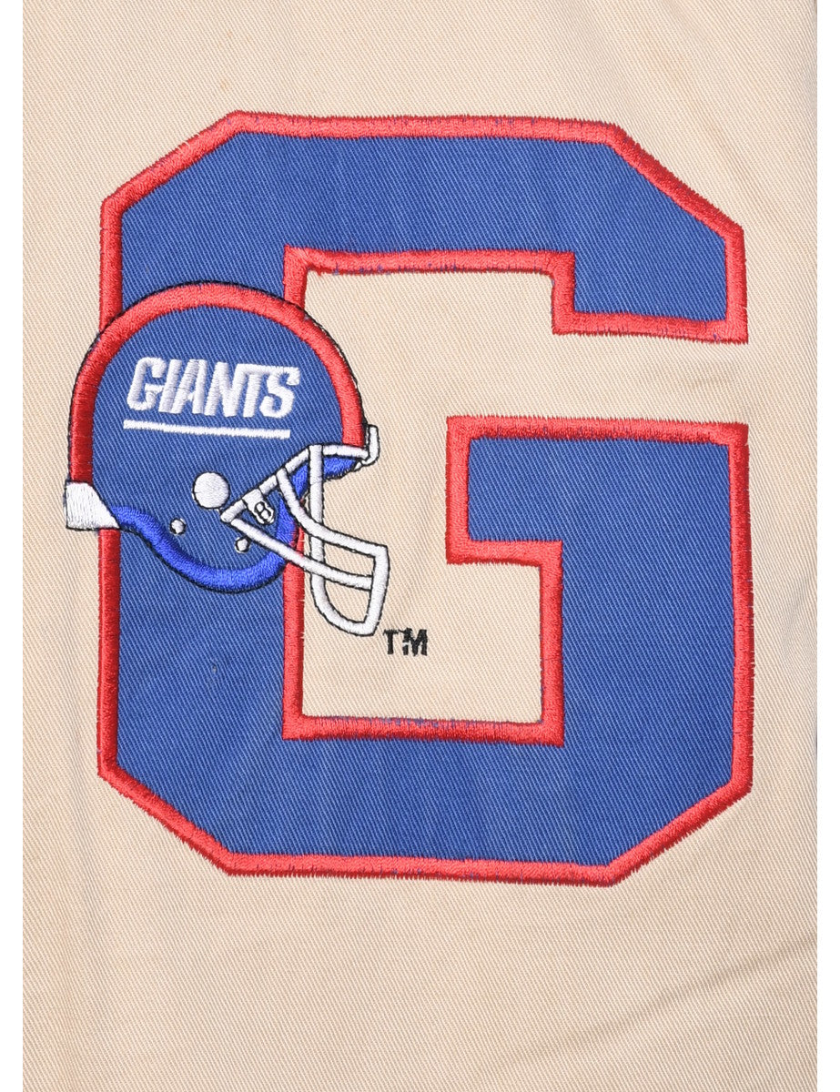 Two tone team jacket in pale yellow & blue with quilted lining and multiple pockets.