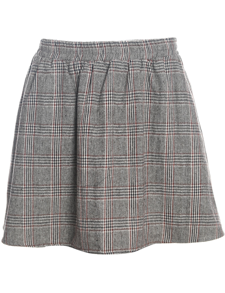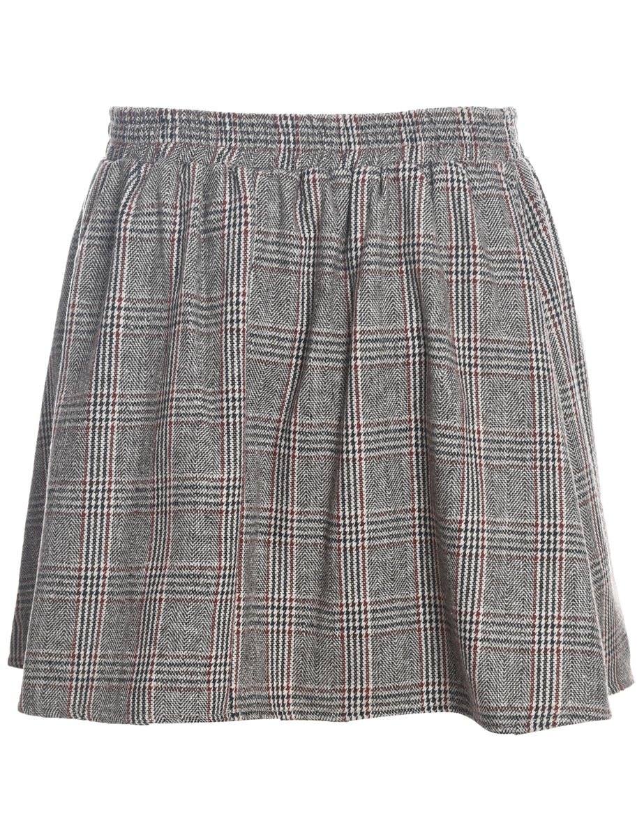 Beyond Retro Label dogtooth cropped wool skirt in grey with elastic waist.