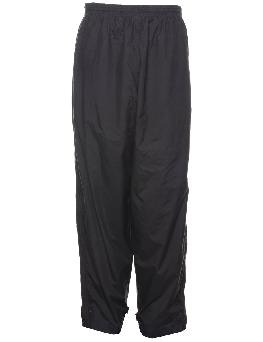 Adidas classic track pants in black with multiple pockets and a drawstring waist.