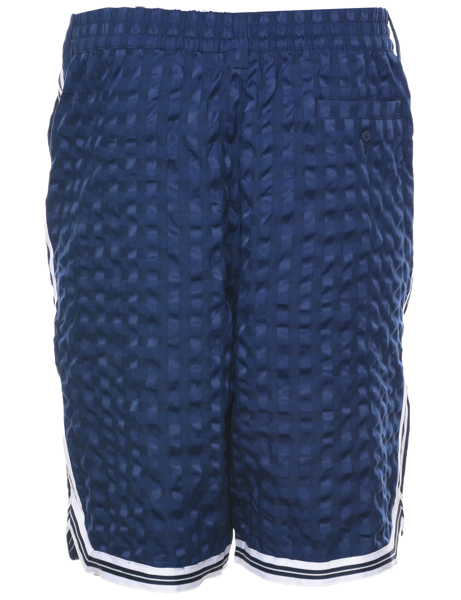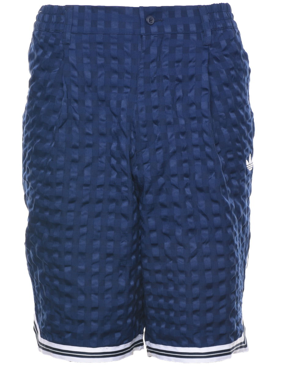 Adidas sport shorts with checked pattern. Comes in navy with an elasticized back and multiple pockets.