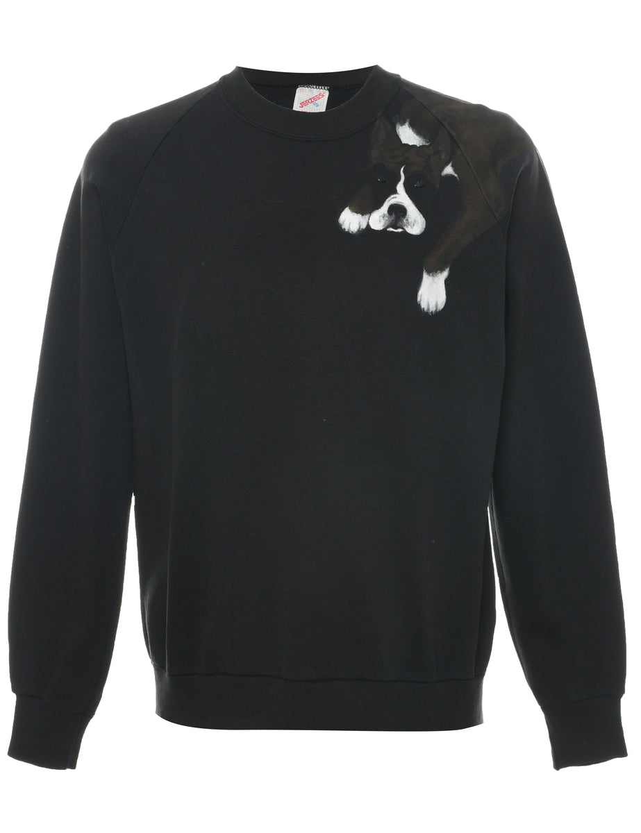 Vintage Black Dog Animal Sweatshirt - XL