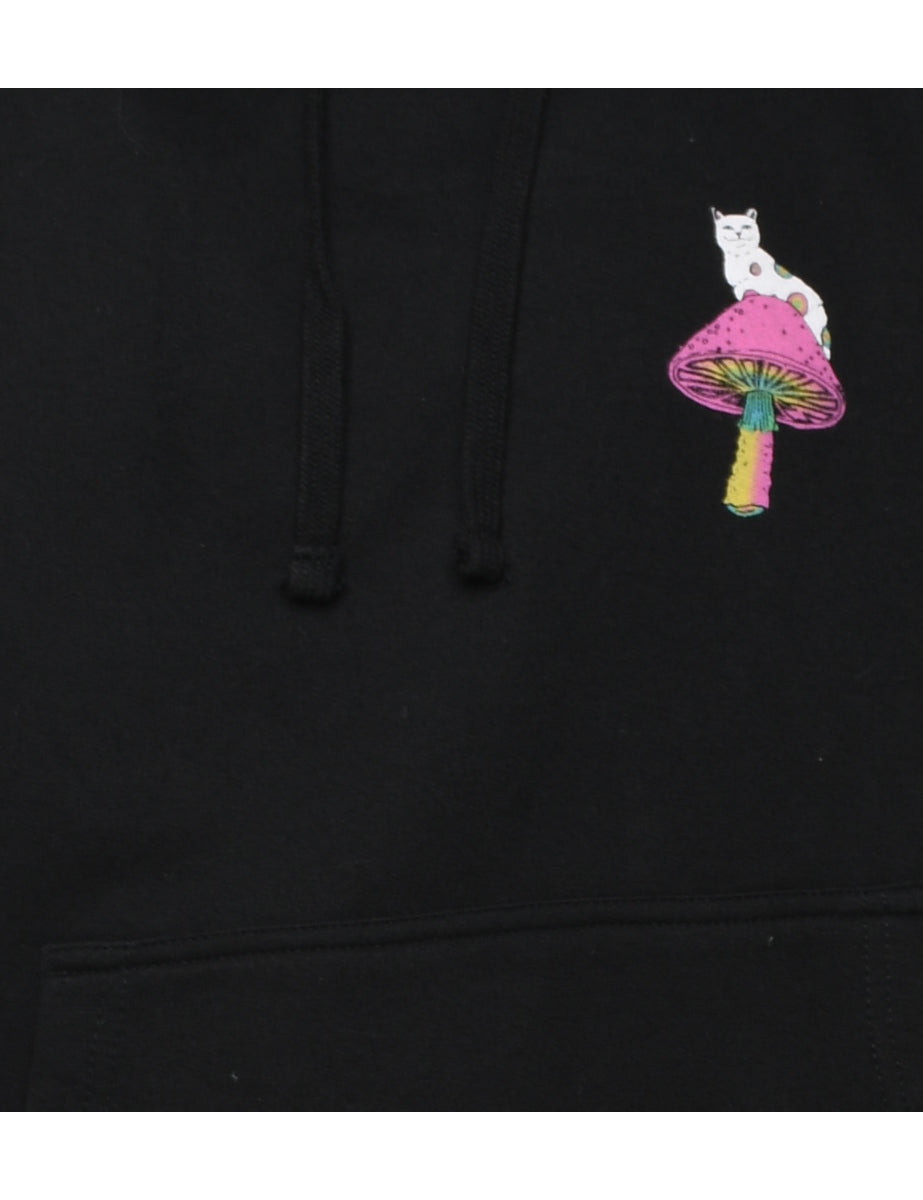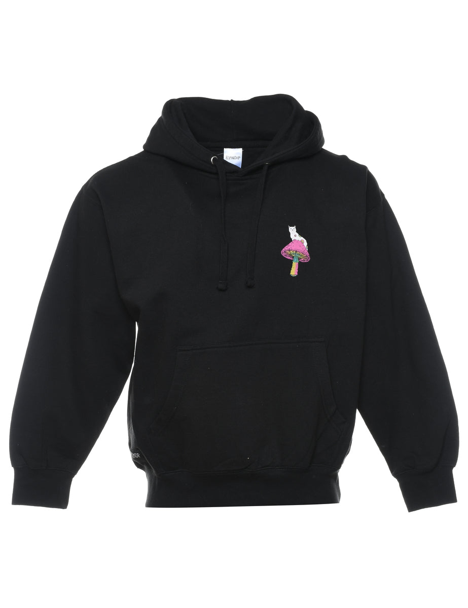 Black mushroom design hooded sweatshirt complete with a pocket.