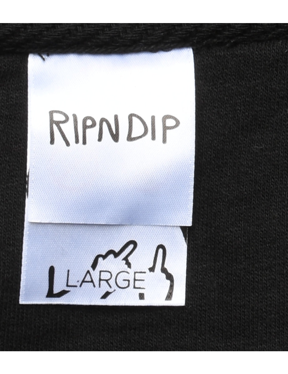 Vintage Black Mushroom Design Hooded Sweatshirt - L