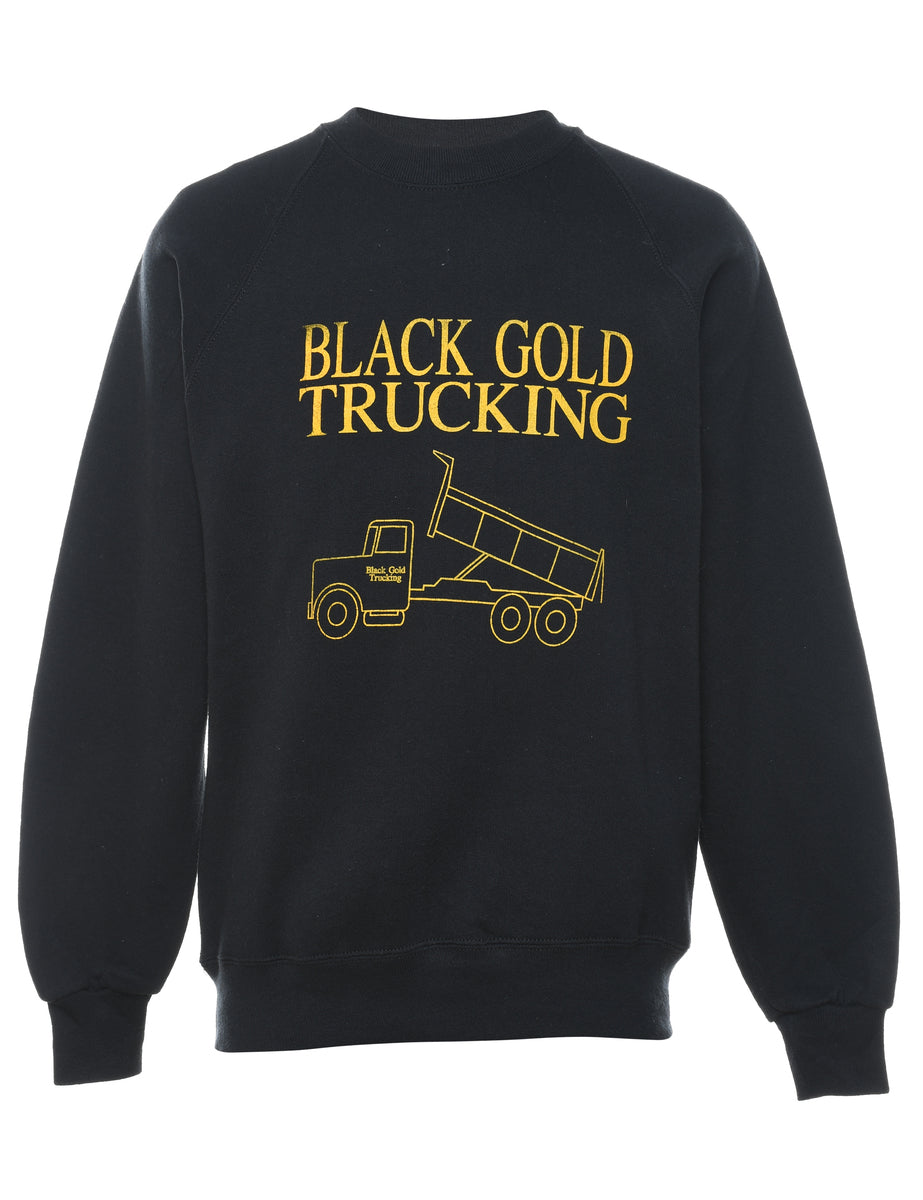 Vintage Black & Yellow Trucking Design Printed Sweatshirt - M