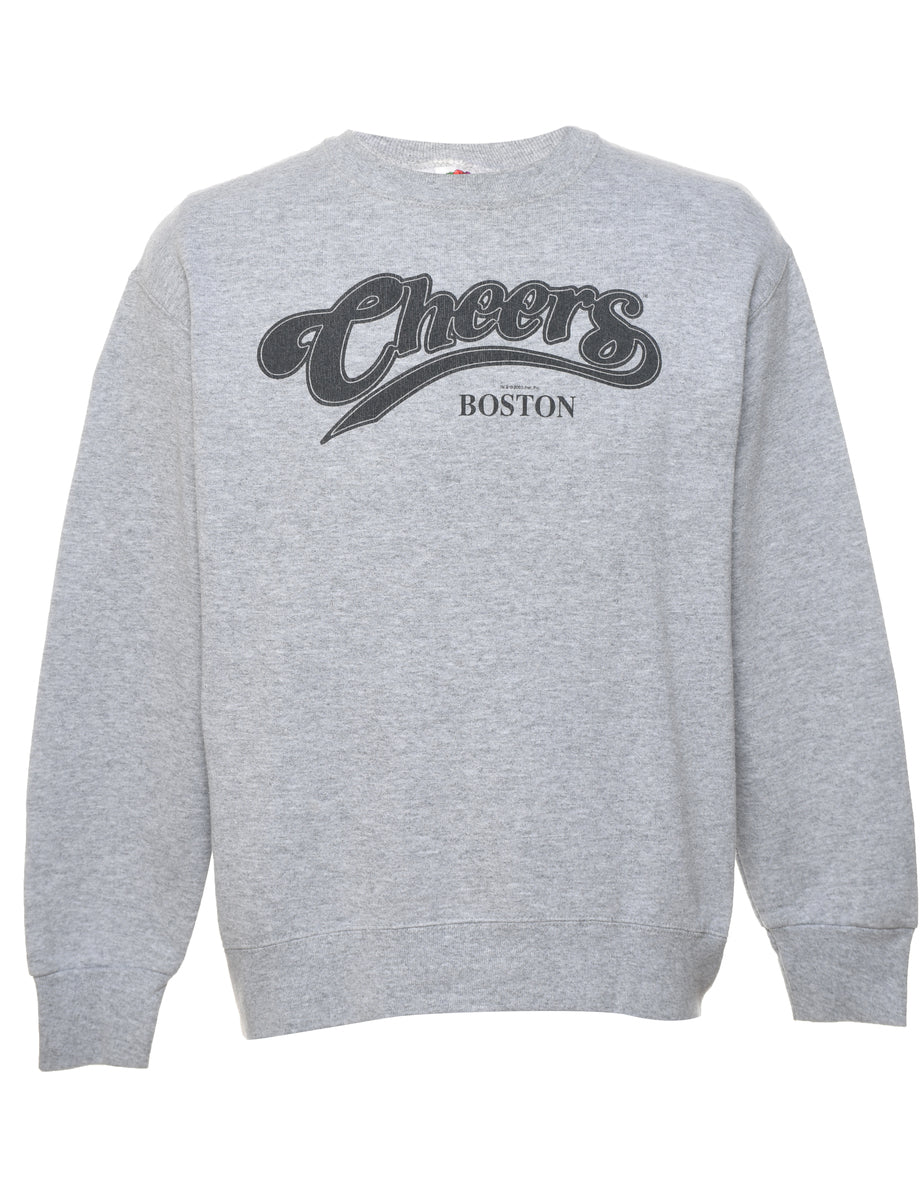 Vintage Cheers Boston Printed Light Grey Sweatshirt - M