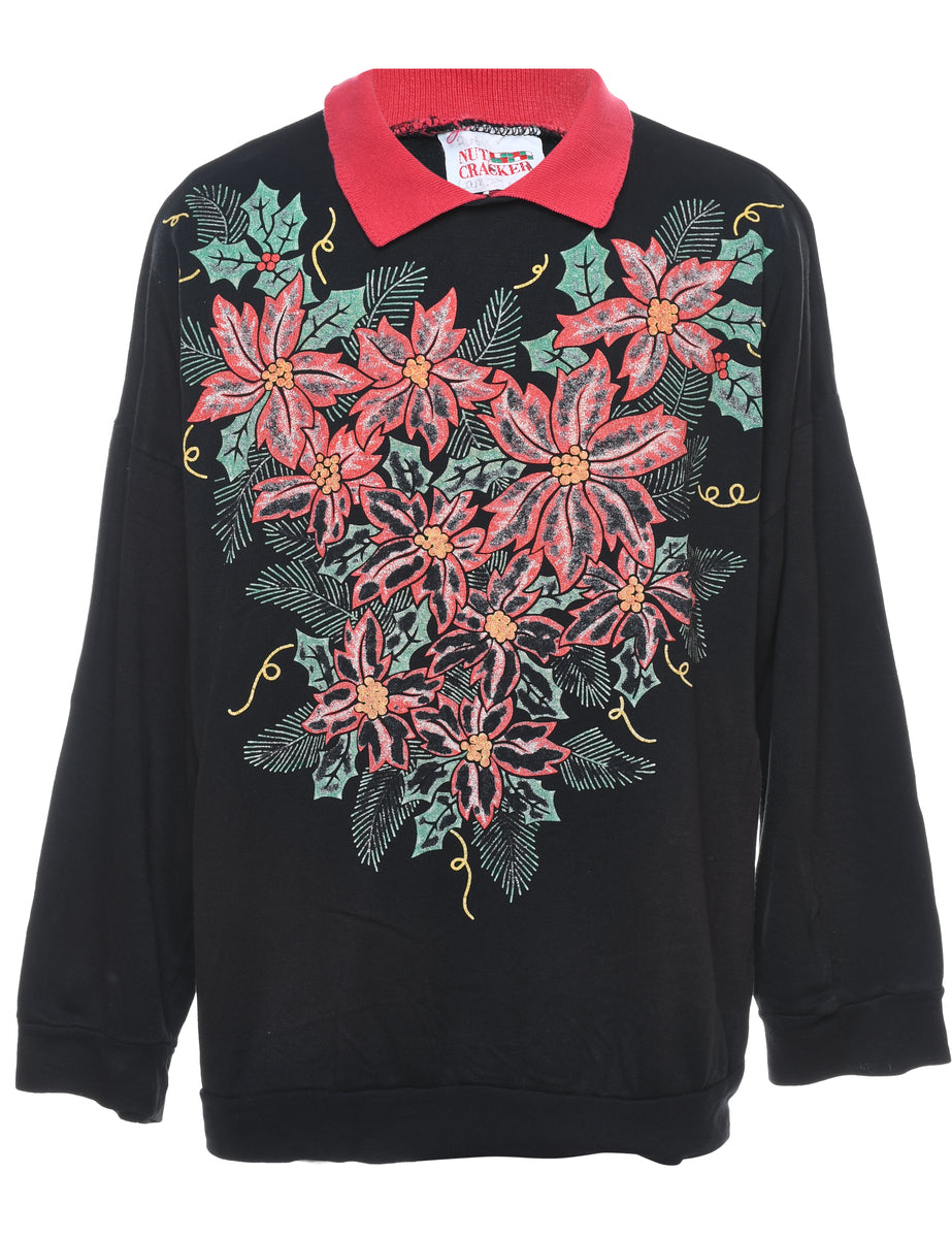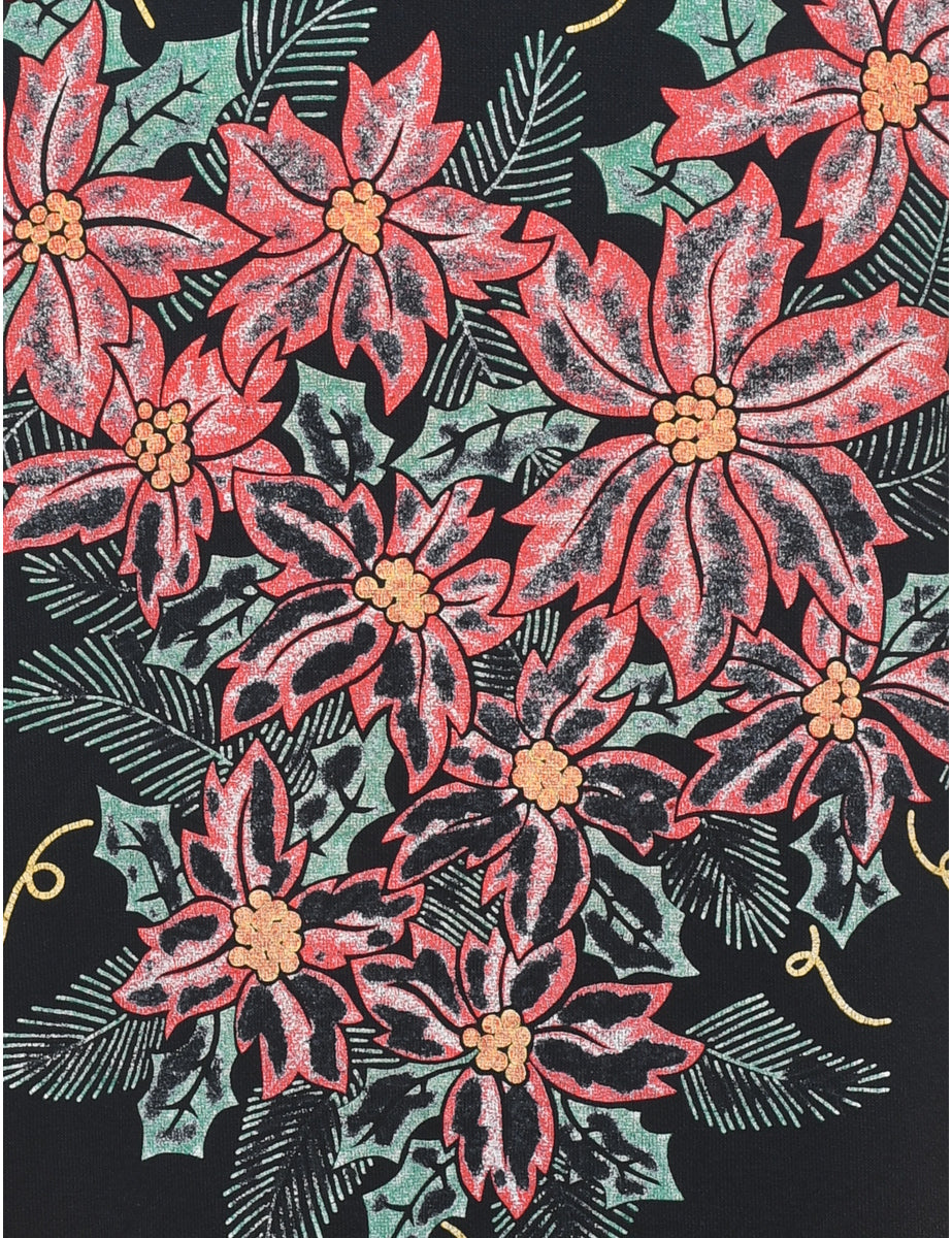 Floral christmas sweatshirt comes in black with a drop shoulder.