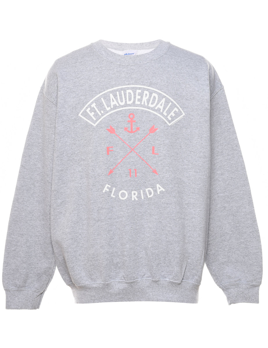 Vintage Grey Ft. Lauderdale Florida Printed Sweatshirt - M
