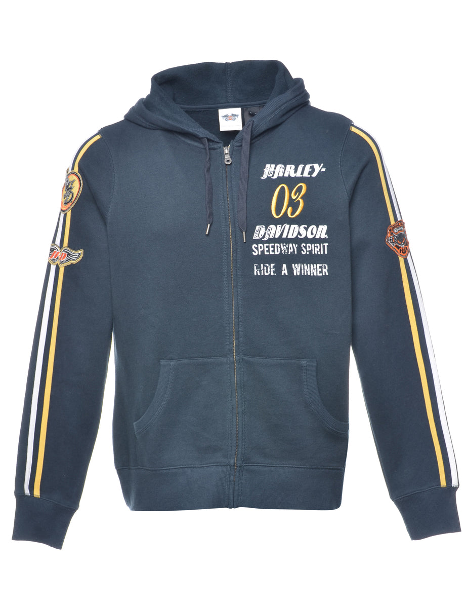 Harley Davidson printed hoodie in black with ribbed cuffs and waistband.