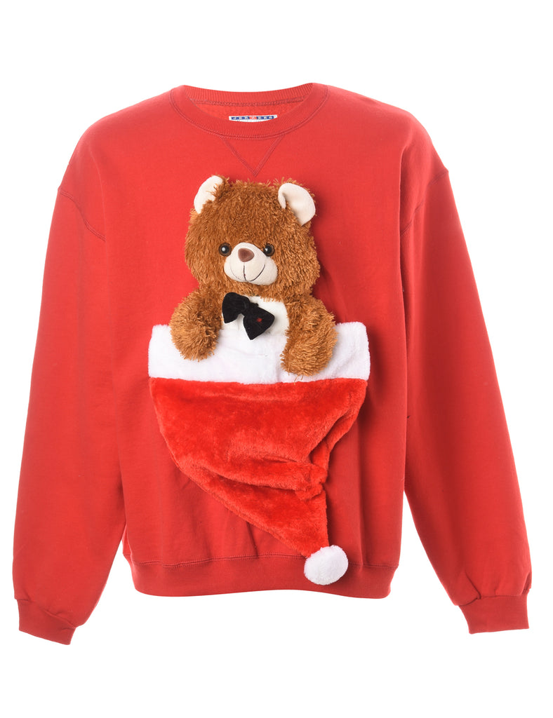 Unique novelty christmas sweatshirt from Beyond Retro Label. Comes in red with a soft toy on the front.