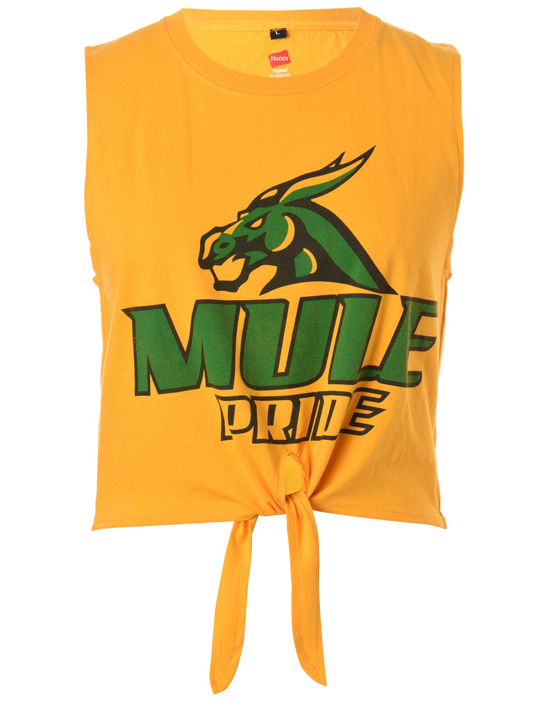 Sleeveless sasha tie front sports vest in yellow. From the brand Beyond Retro Label.
