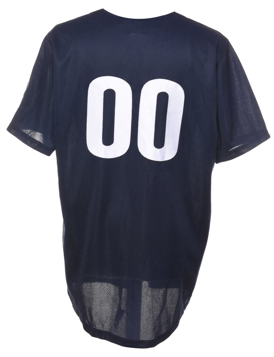 Button front Markham jersey comes in navy & white complete with patchwork applique.
