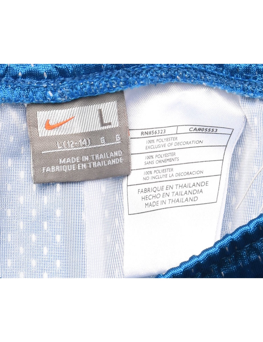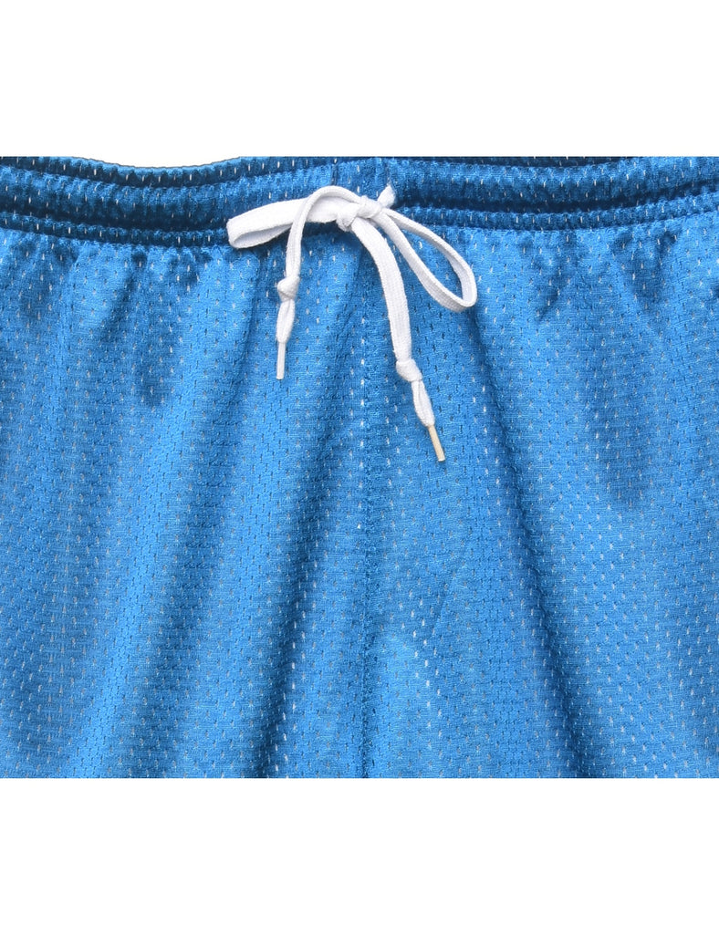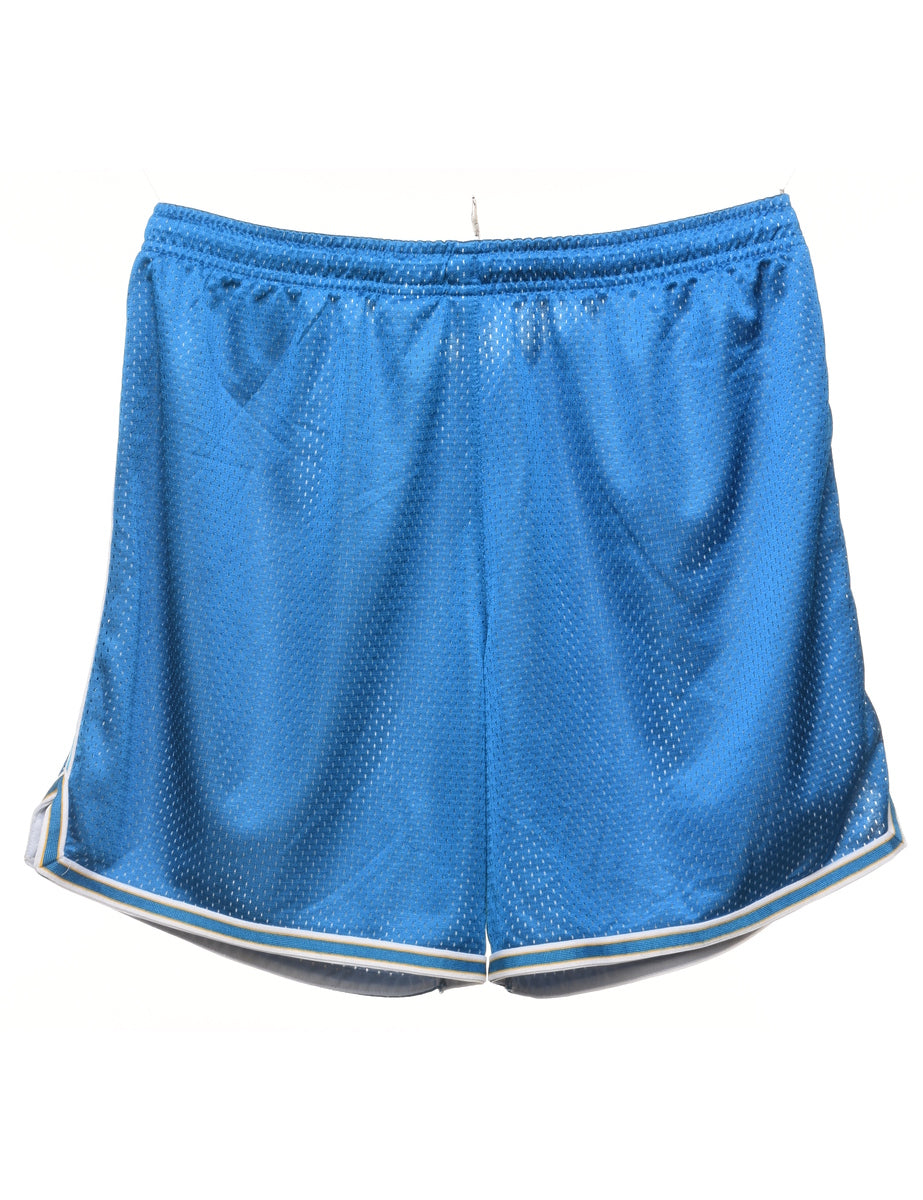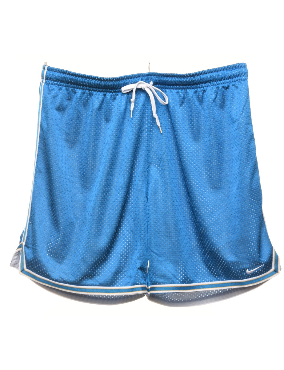 Nike flared sports shorts. Comes in blue with a drawstring waist.