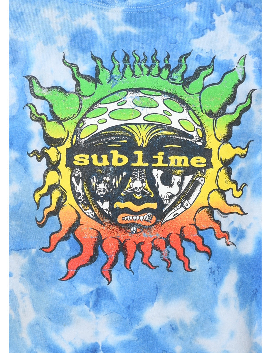 Tie-dye sublime sweatshirt comes in light blue with a drop shoulder.