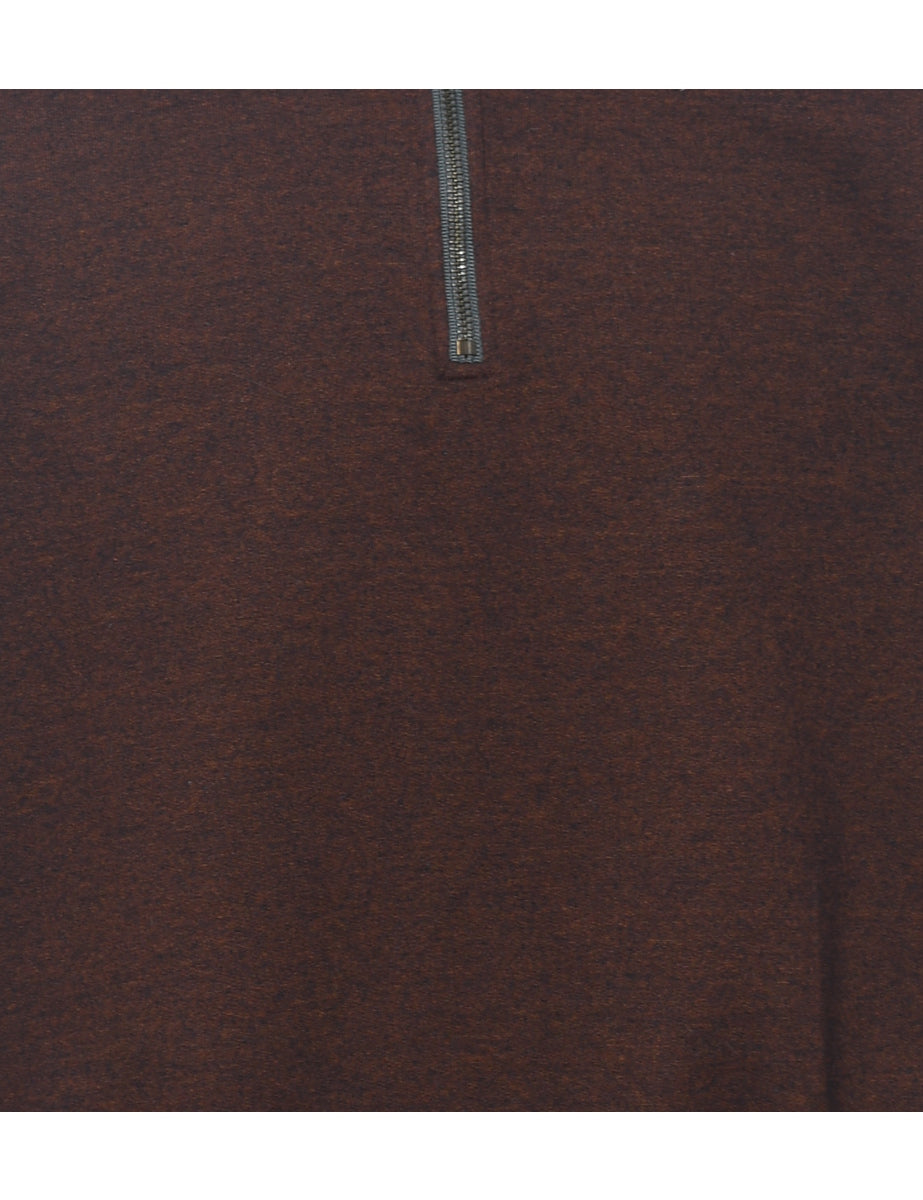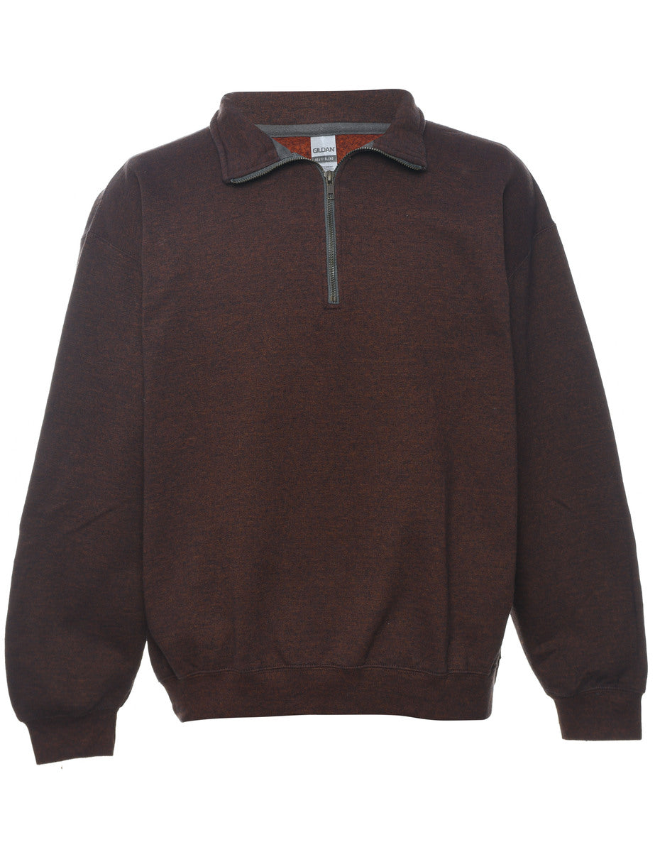 Quarter zip plain sweatshirt. Comes in dark brown with a drop shoulder.