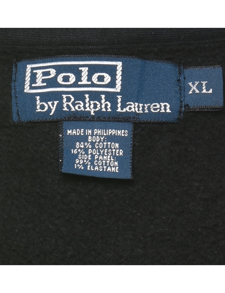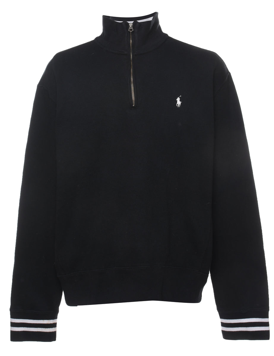 Ralph Lauren quarter-zip 1990s plain sweatshirt comes in black with ribbed cuffs and waistband.