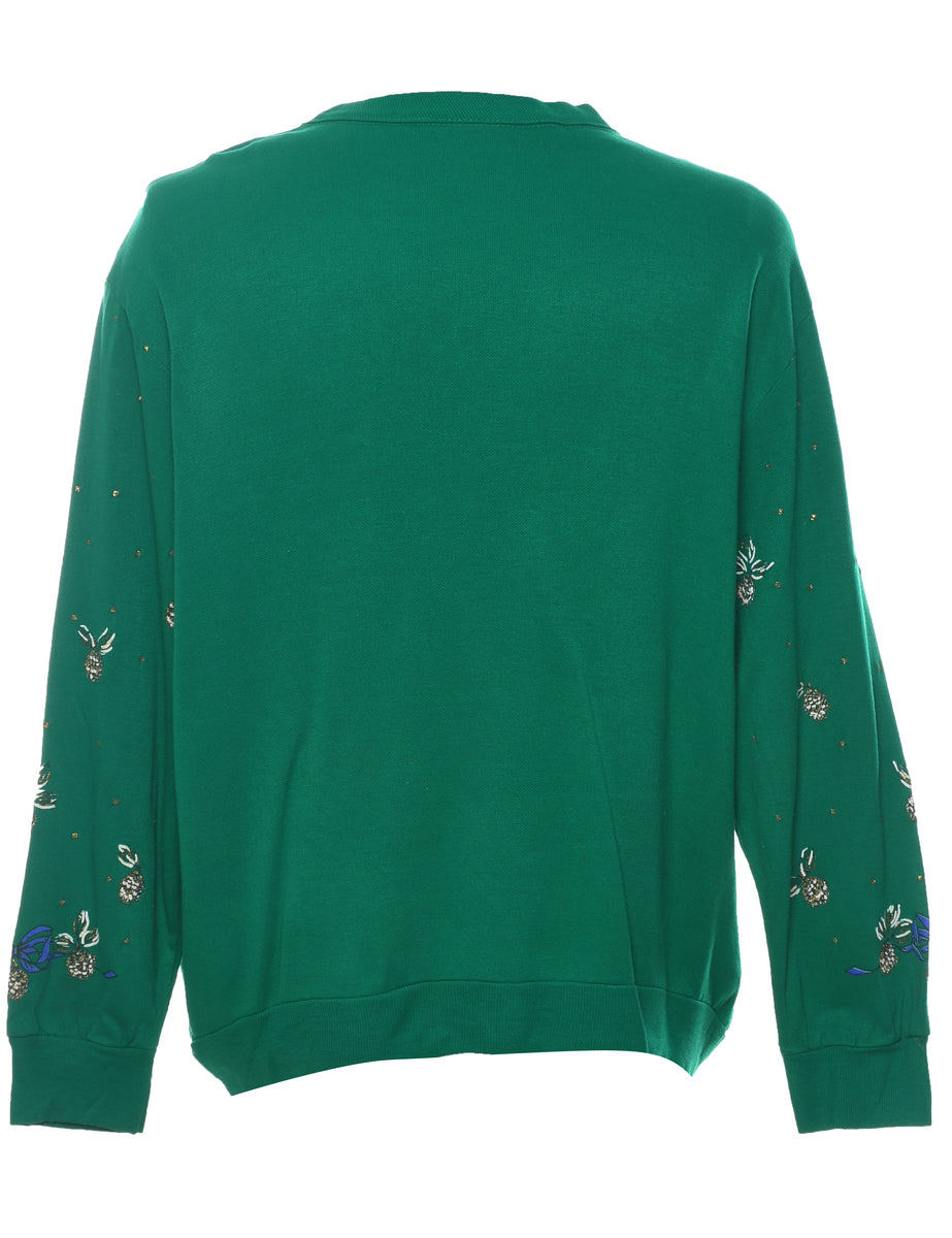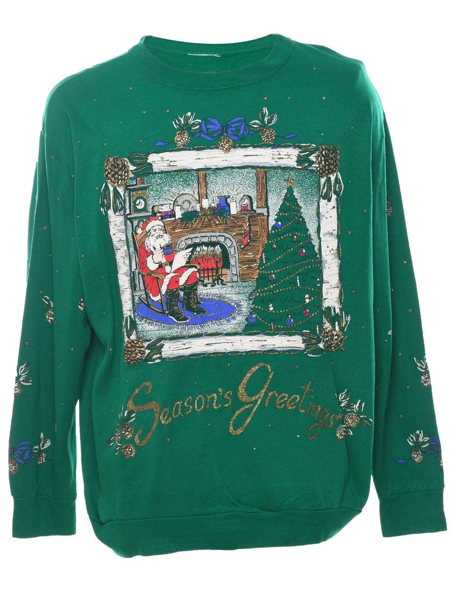 Vintage Santa Claus Design Dark Green Christmas Sweatshirt - M